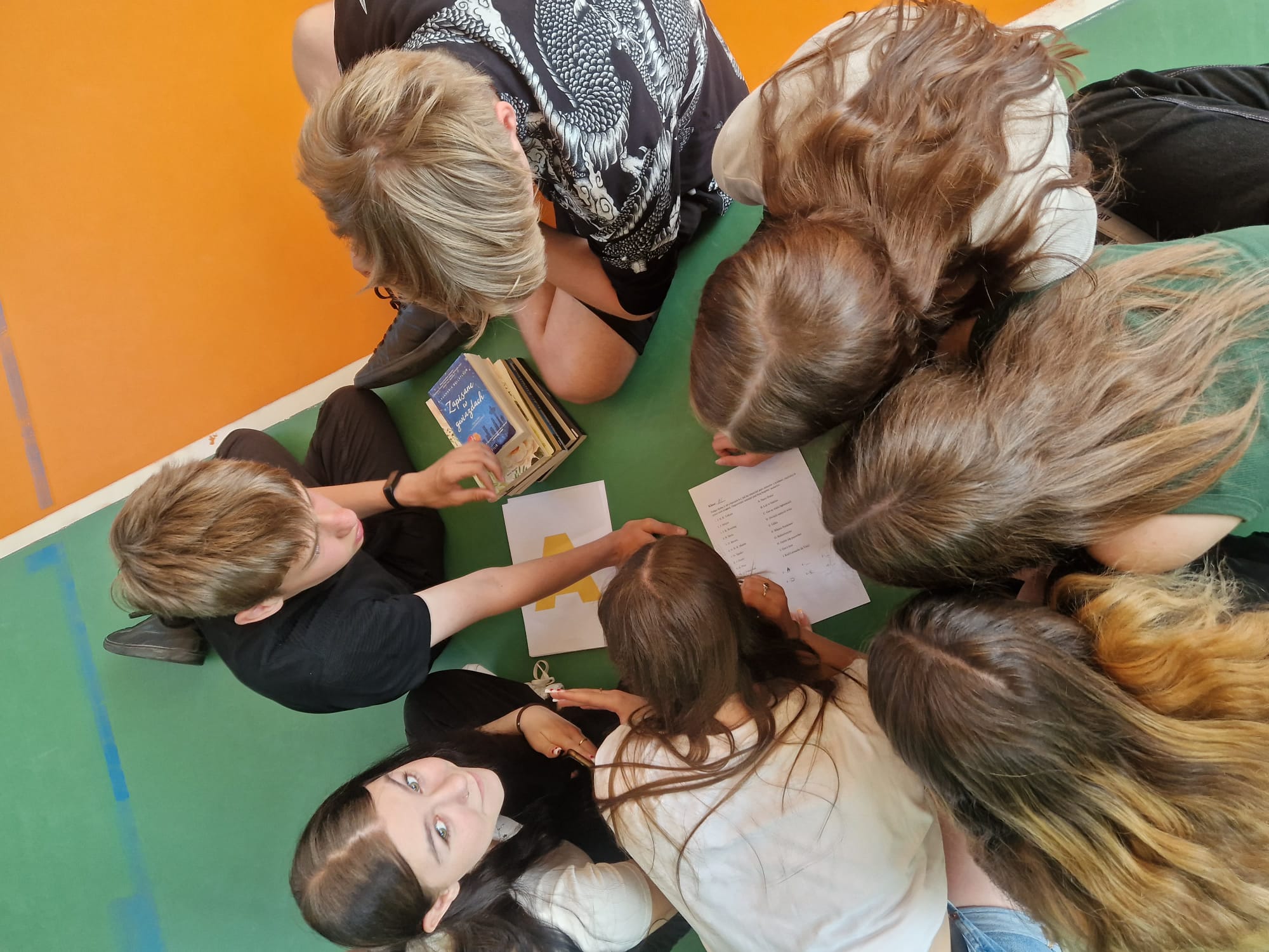 Pierwszym zadaniem uczniów było połączenie tytułów książek z autorami. Drugim – uzupełnianie słów w kolejnych wersach „Lokomotywy” J. Tuwima. Trzecia konkurencja polegała na stworzeniu „żywej rzeźby” z książką. Pomysłowość uczniów w ostatniej konkuranecji była dla nas niemałym zaskoczeniem.