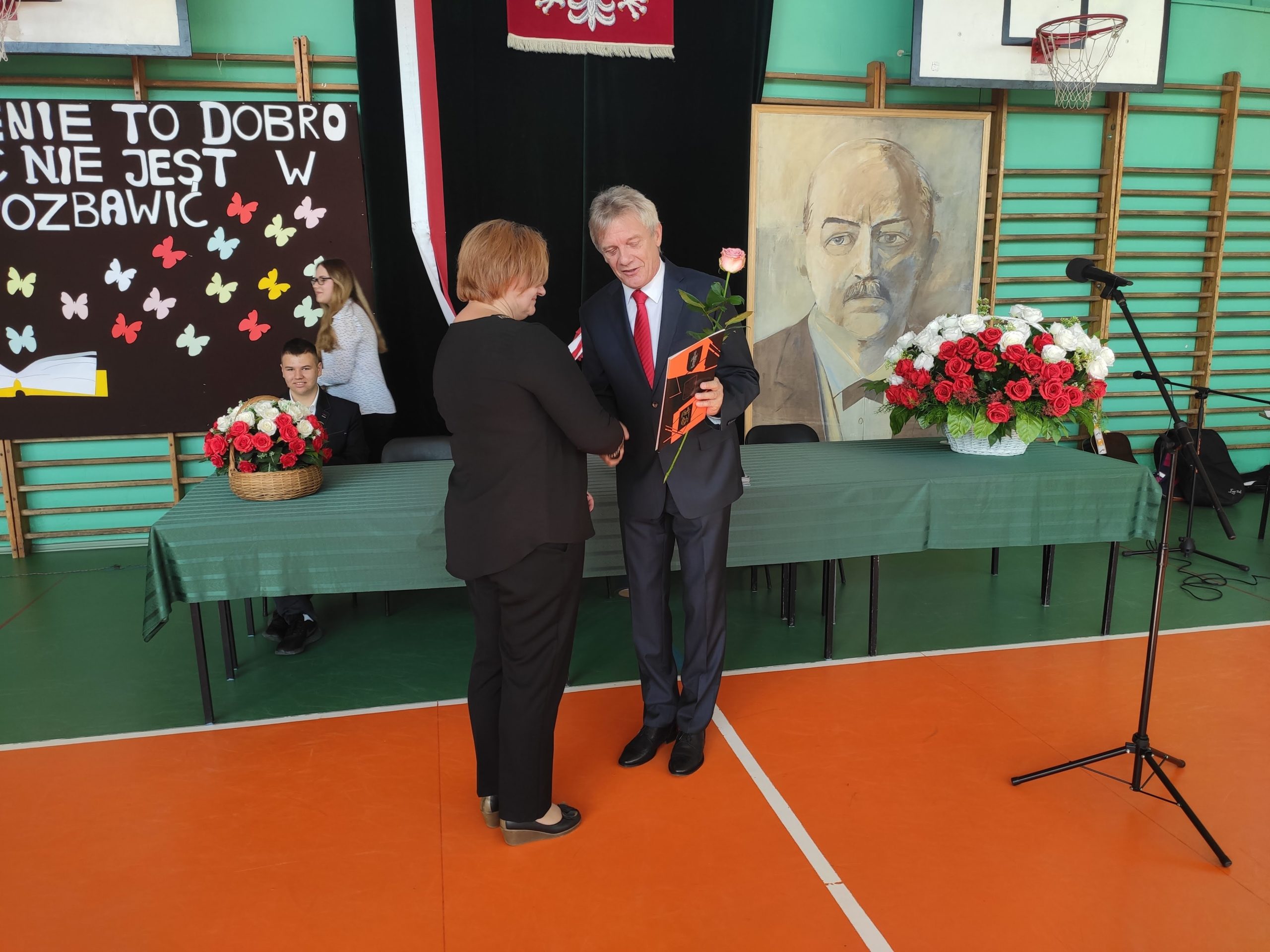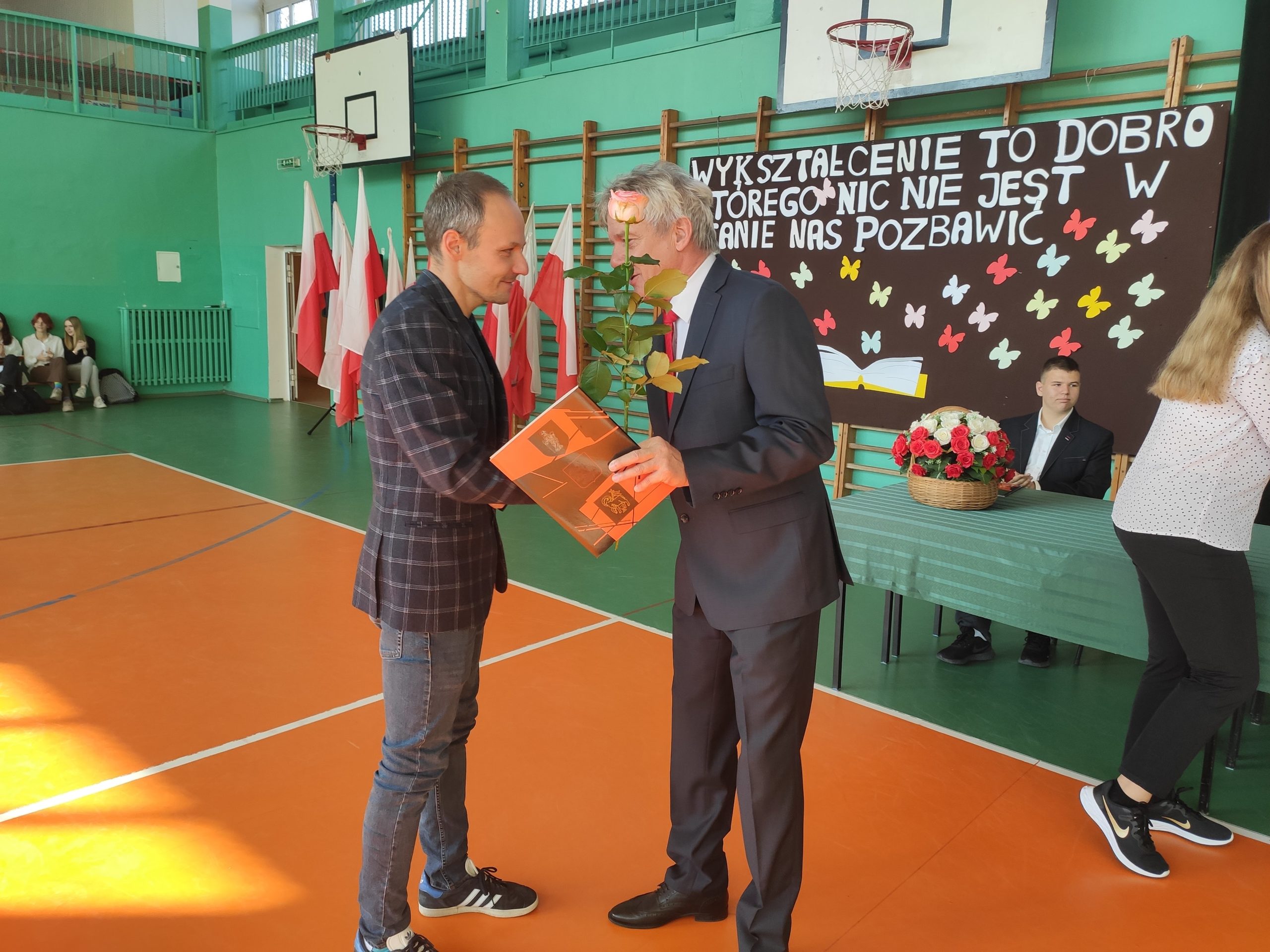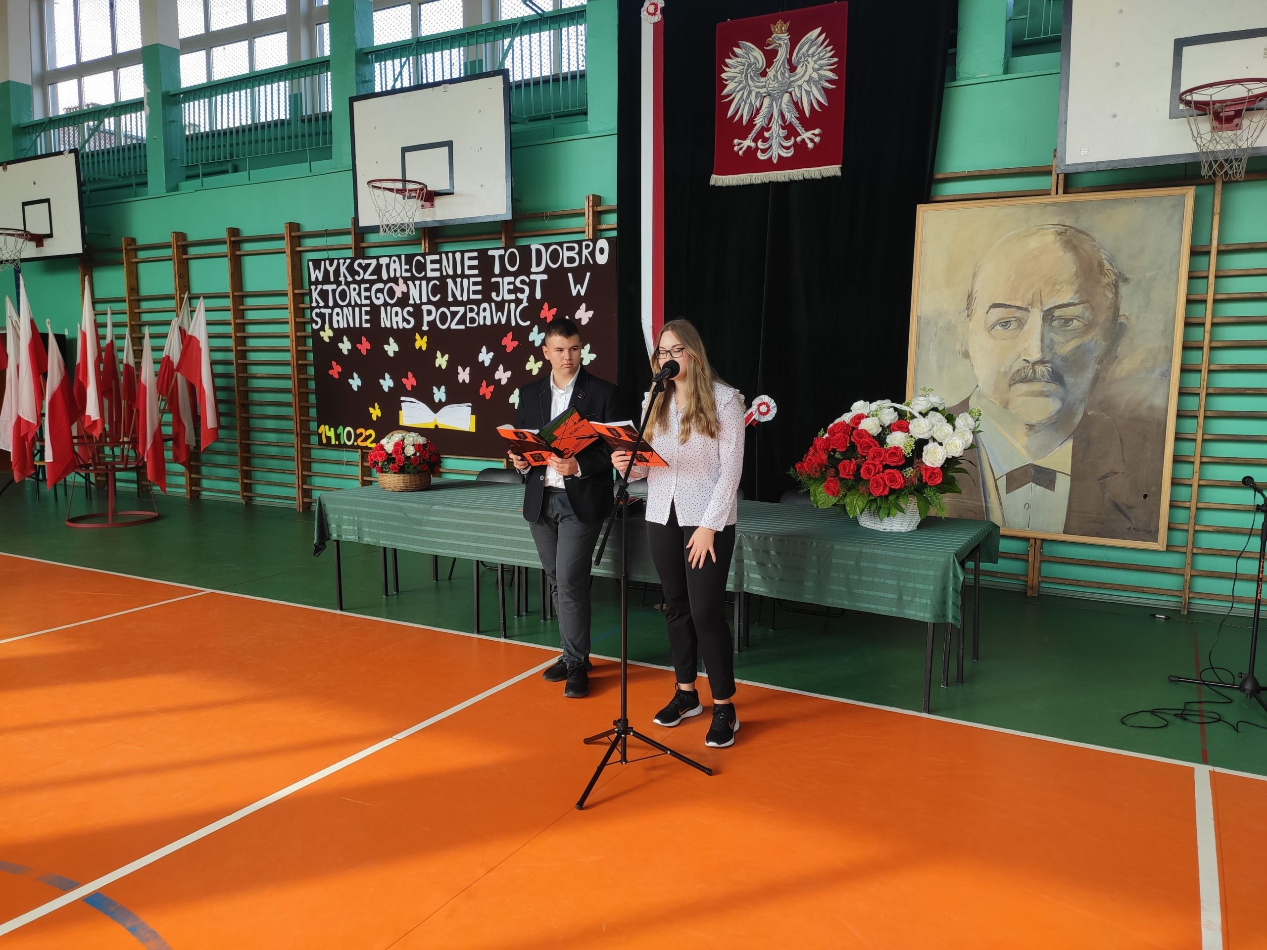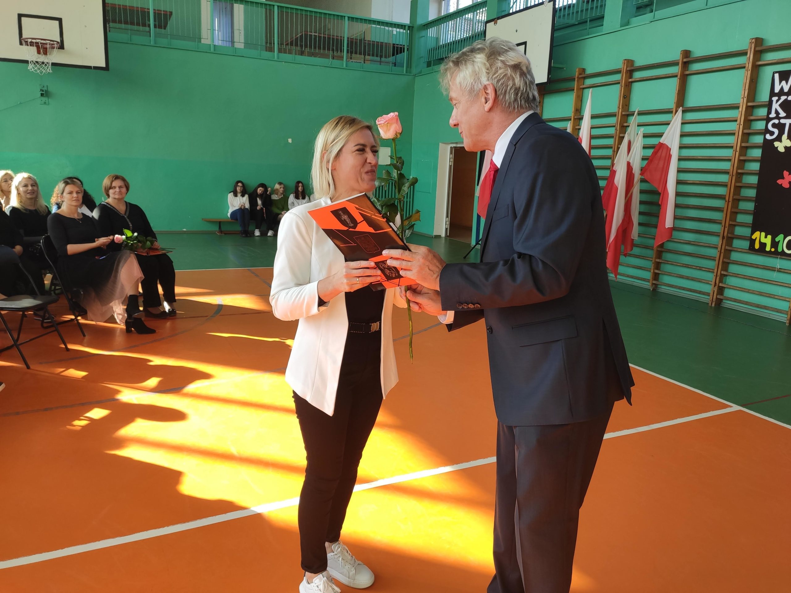 W dniu 13 października z okazji Dnia Nauczyciela odbyła się w naszej szkole uroczysta akademia. Tradycyjnie rozpoczął ją pan dyrektor składając wszystkim nauczycielom życzenia. Przy okazji podzielił się ze wszystkimi refleksją dotyczącą pracy nauczyciela w dzisiejszych czasach oraz jak ważne są osoby wspomagające pracę szkoły. Nauczyciele i wychowawcy, którzy swoją pracą wyróżniły się w ostatnim roku zostali uhonorowani nagrodą pana dyrektora. Klasa 2c przygotowała występ, który pokazywał pracę dzisiejszego nauczyciela. Mogliśmy też posłuchać kilku piosenek przygotowanych przez nasz zespół artystyczny.