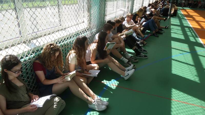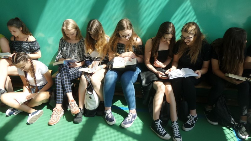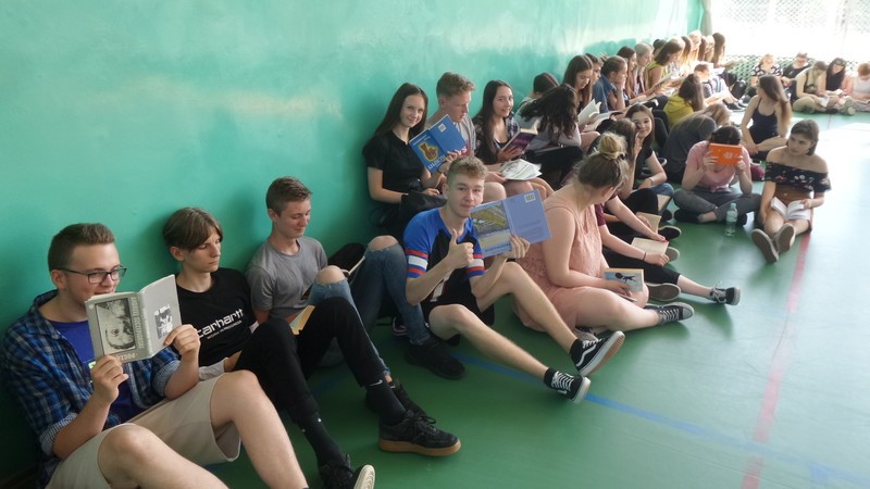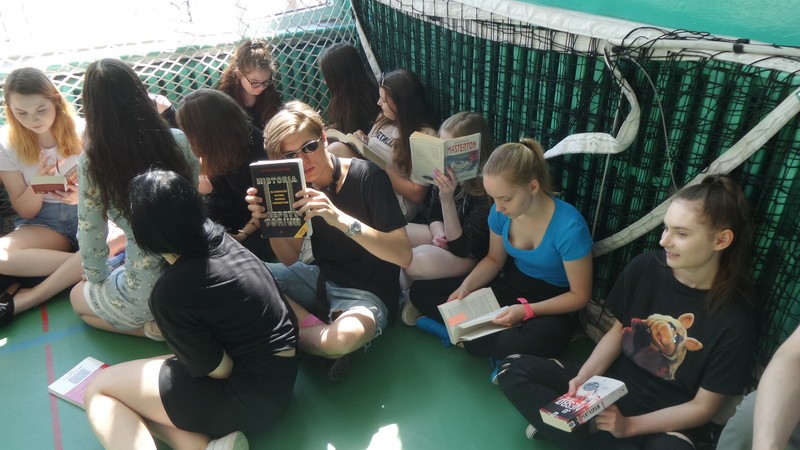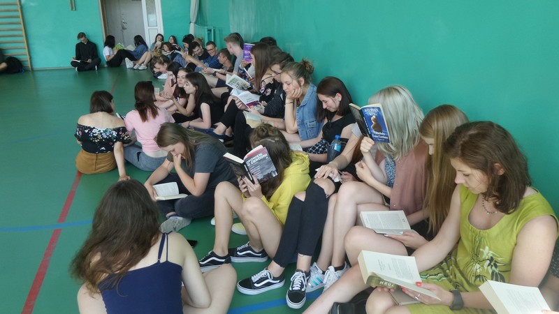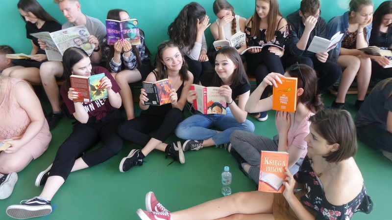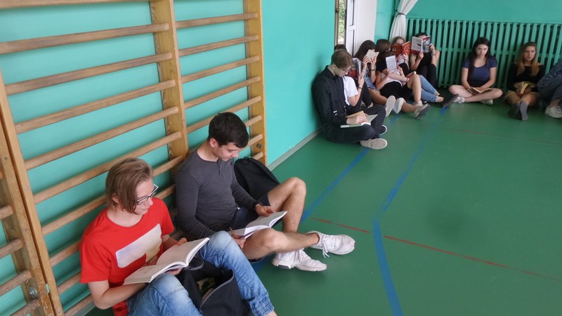 Nasza szkoła już po raz trzeci wzięła udział w akcji czytelniczej: Jak nie czytam, jak czytam. Co roku uczniowie szkół z całej Polski spotykają się na wspólnym czytaniu i biją rekord w liczbie osób czytających w tym samym momencie. W poprzedniej edycji wspólnie czytało 406 825 osób, a w naszej szkole 145 uczniów. Tym razem również udało nam się pobić rekord, gdyż zebraliśmy się w gronie 169 osób! Tak naprawdę rekord jest jednak tylko pretekstem. Chodzi o to, żeby poczytać wspólnie i pokazać, że czytanie jest fajne. Przecież jest, prawda? Imprezie towarzyszył quiz z kodami qr na temat czytelnictwa wśród pracowników naszej szkoły i biblioteki szkolnej. Gratulujemy dziewczynom z klas 1a, 2a i 2b, które wzięły udział w zabawie. Do zobaczenia za rok.