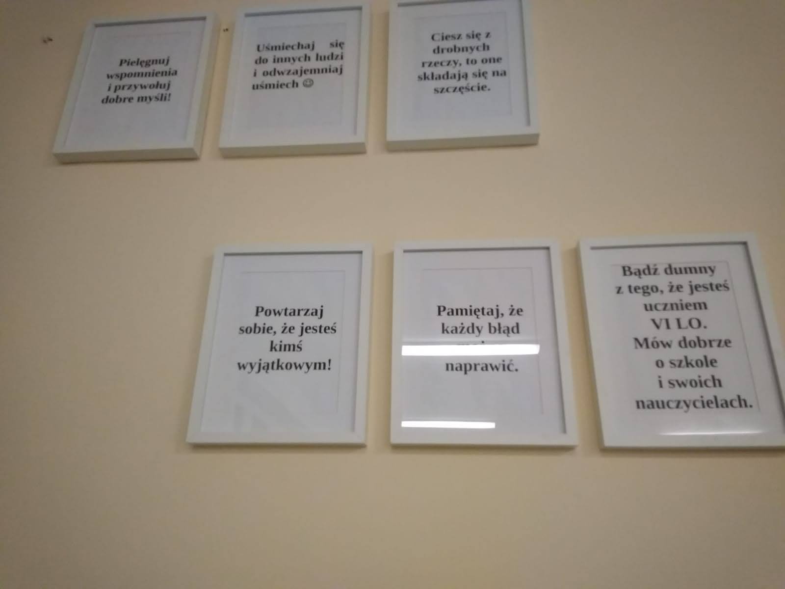 Jeszcze raz składam ogromne podziękowania w imieniu swoim, uczniów VI LO, dyrekcji, nauczycieli – Panu Grzegorzowi Wojasińskiemu, Adamowi Bazydle, dzięki którym nasza szkoła zyskała nowe, świeże „oblicze”.