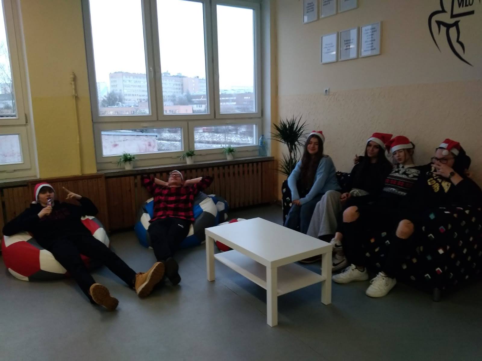 Nasza szkoła wzbogaciła się niedawno o kącik relaksacyjny. Dzięki ogromnemu sercu pracowników firmy Michelin Polska w Olsztynie, wyrozumiałości dla naszych potrzeb i działań organizacyjno – wychowawczych, a co za tym idzie – wsparciu materialnemu, uczniowie zyskali miejsce, w którym mogą mile spędzić czas, wygodnie posiedzieć na kanapie, kolorowych pufach, porozmawiać ze sobą, wspólnie się pouczyć lub coś poczytać. Kącik ten znajduje się na drugim piętrze koło sali 201 i powstał z inicjatywy p. Katarzyny Dubickiej.
