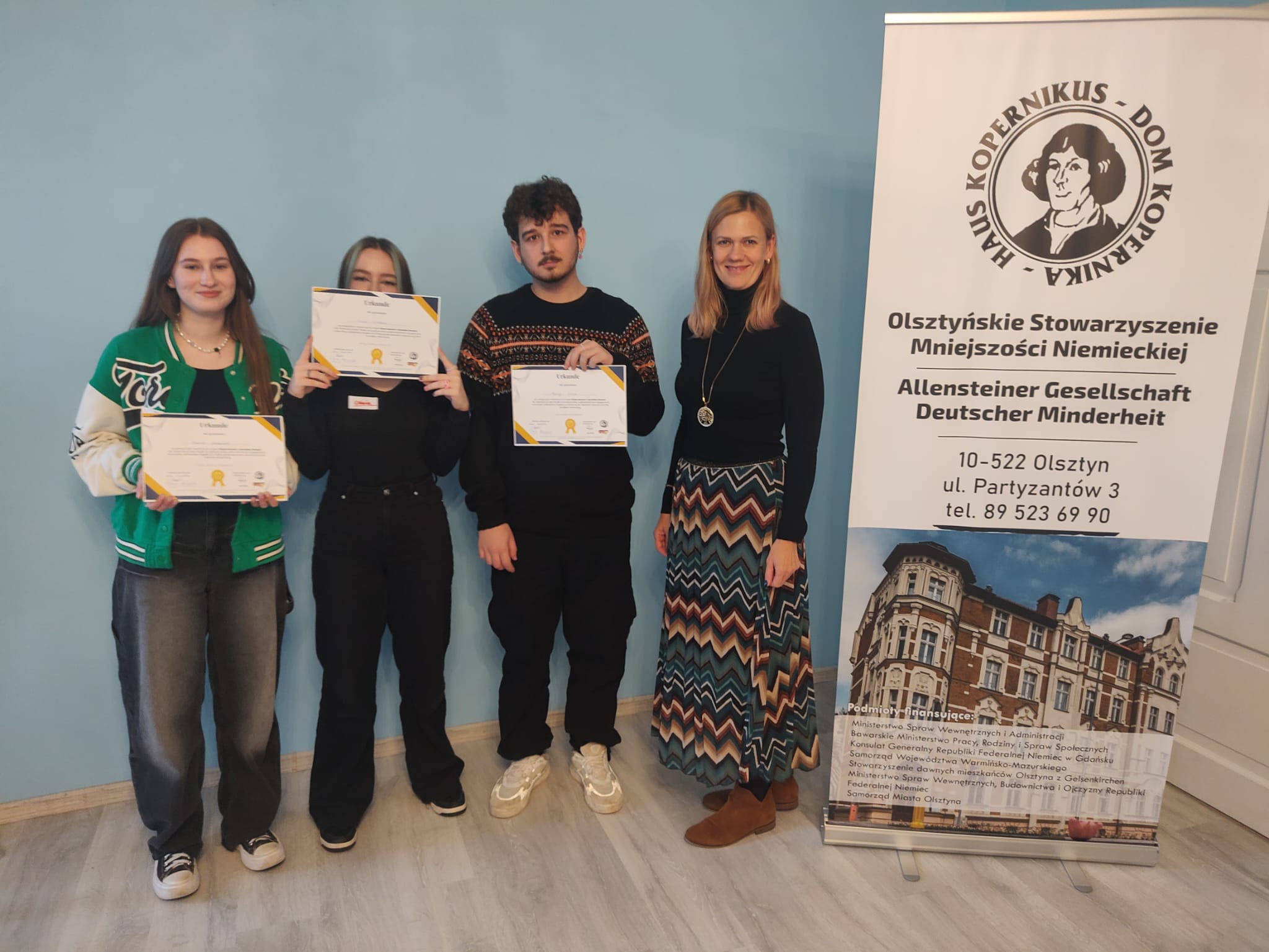 W dniu 20 października 2023 uczniowie klasy 4d Maciej Kiśluk, Oliwia Łukasiak i Martyna Werbowska reprezentowali szkołę w konkursie ortograficznym z języka niemieckiego Gutes Deutsch, korrektes Deutsch. Konkurs zorganizowany został przez Olsztyńskie Stowarzyszenie Mniejszości Niemieckiej we współpracy z Katedrą Języka Niemieckiego UWM.