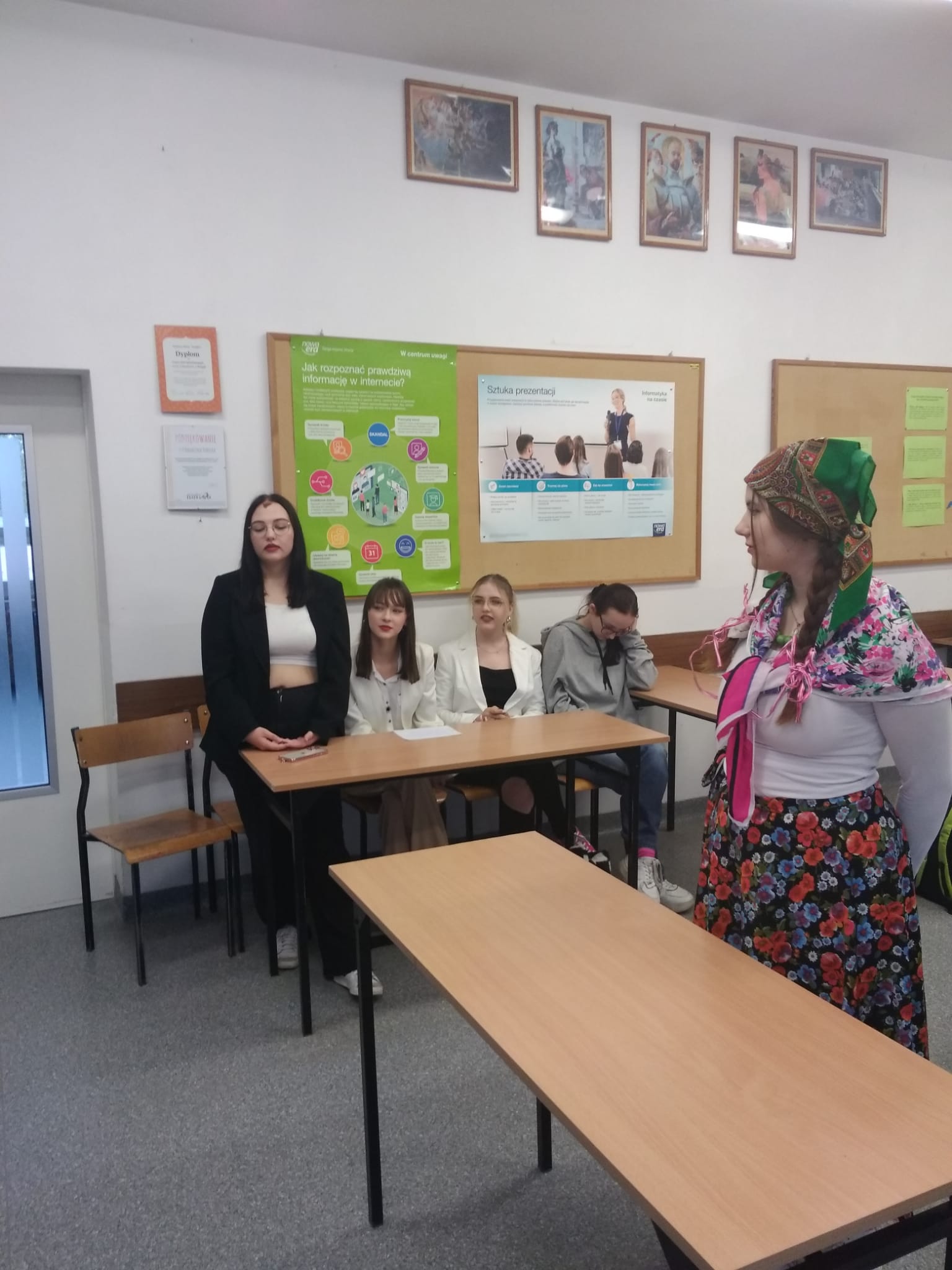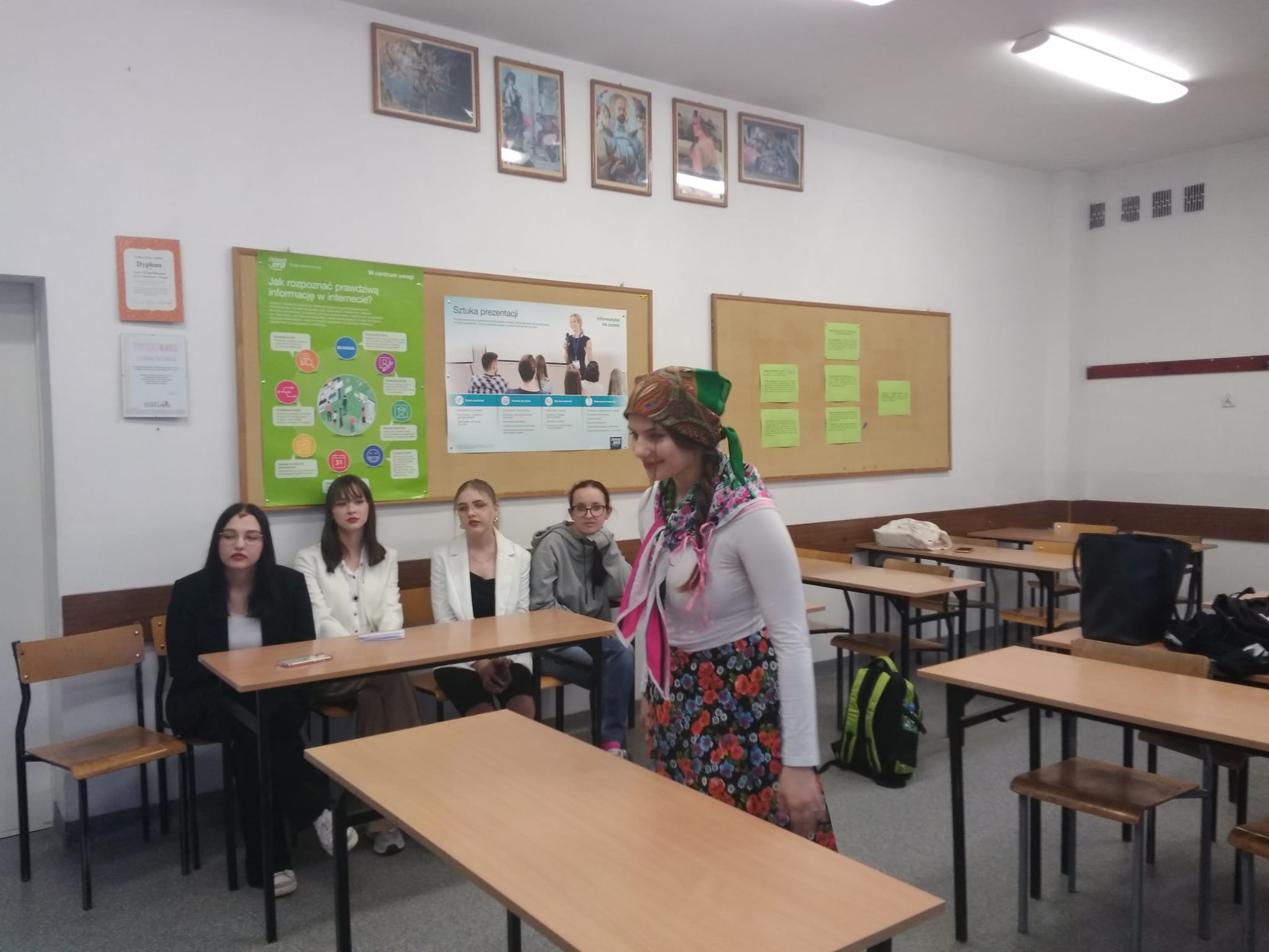 Klasa IIIa mistrzowsko odegrała dziś na lekcji języka polskiego scenę pt. Sąd nad Jagną (na podstawie powieści W. S. Reymonta „Chłopi”). W rolę sędziego perfekcyjnie i z ogromnym zaangażowaniem oraz aktorskim zacięciem wcielił się Jakub Pietrzak. Aleksandra Szostek natomiast znakomicie odegrała rolę pięknej i oskarżonej o niemoralne prowadzenie się – Jagny. Zarówno grupa oskarżycieli, jak i obrońców dzielnie broniła swoich stanowisk, wysuwając szereg argumentów. Jeśli chcecie wiedzieć, czy Jagnę skazano, czy uniewinniono, zapytajcie samych uczniów:)