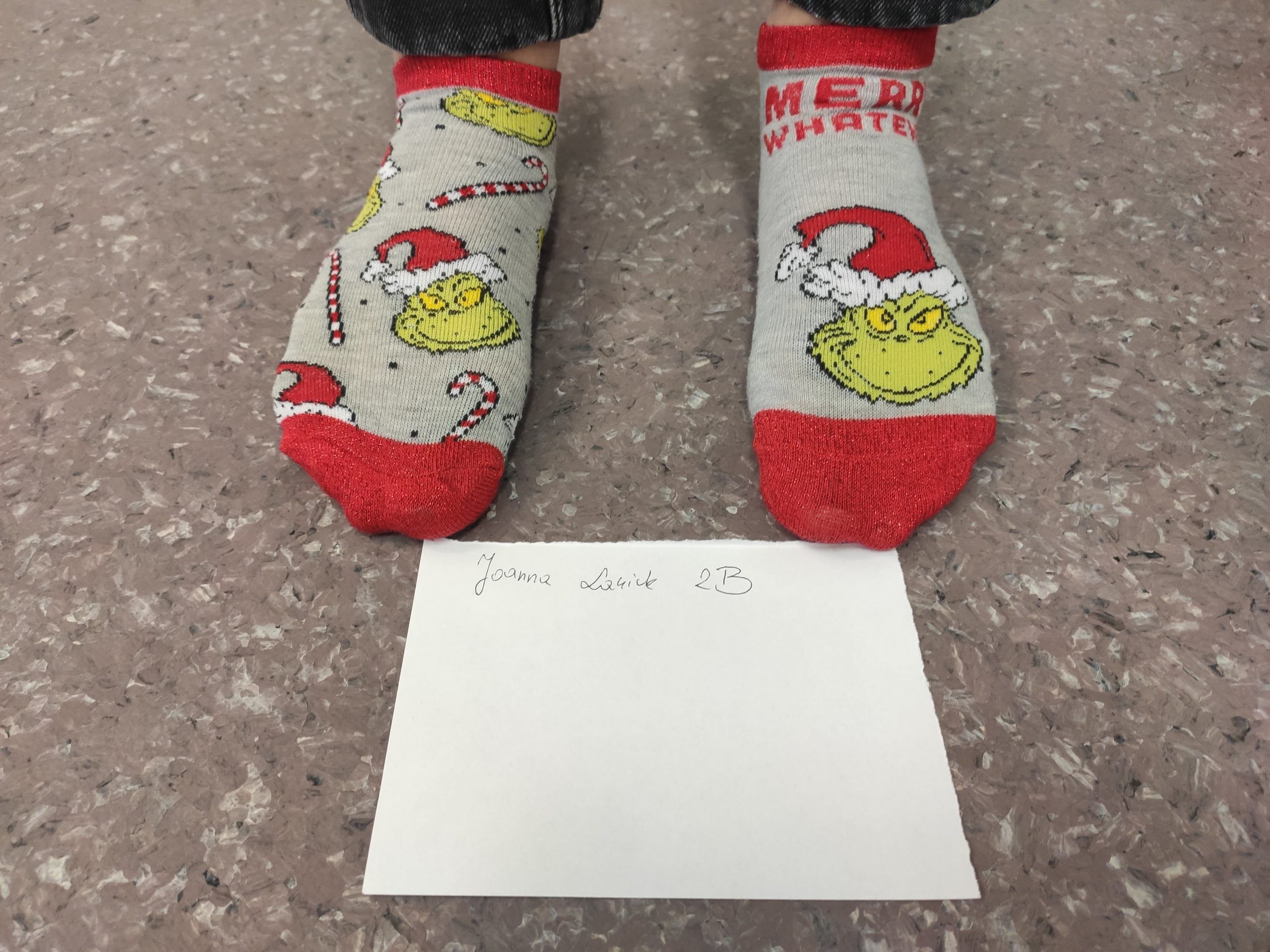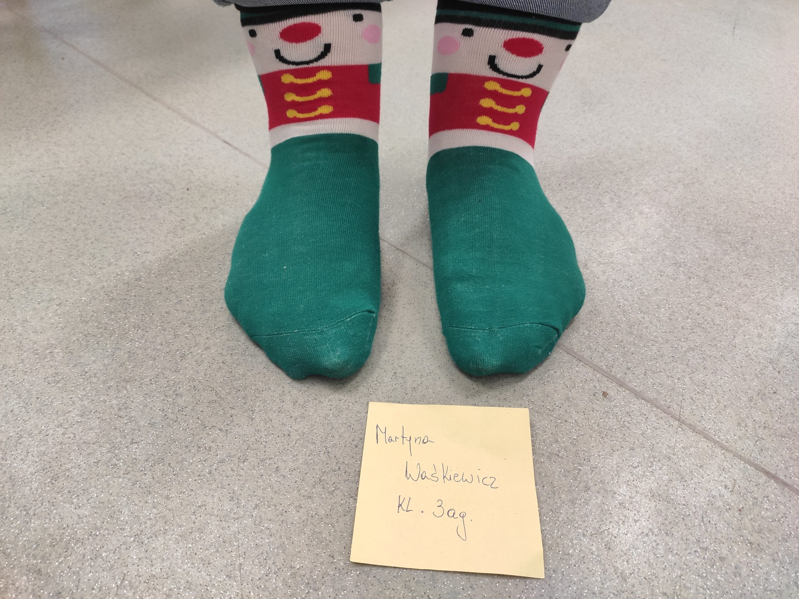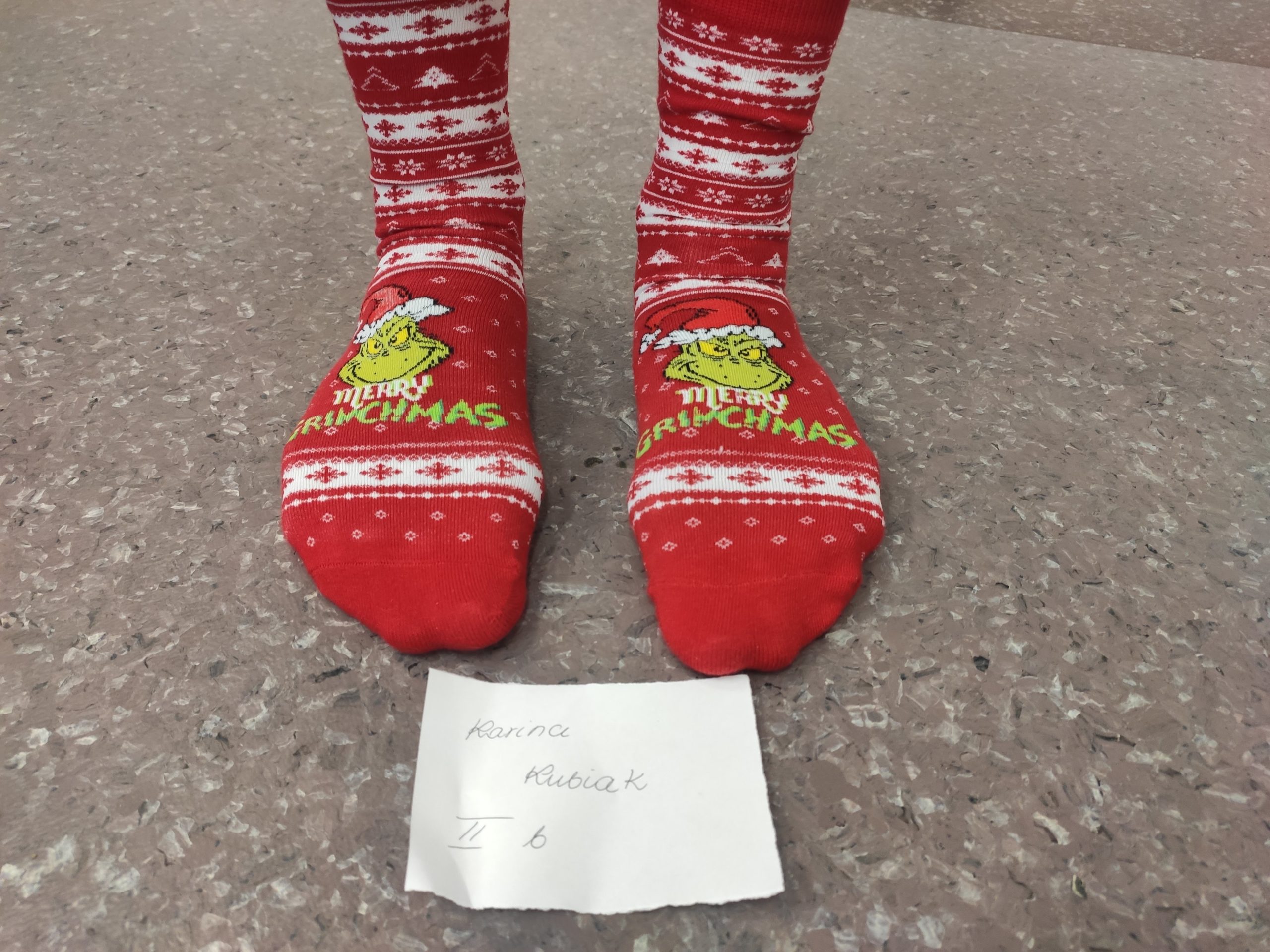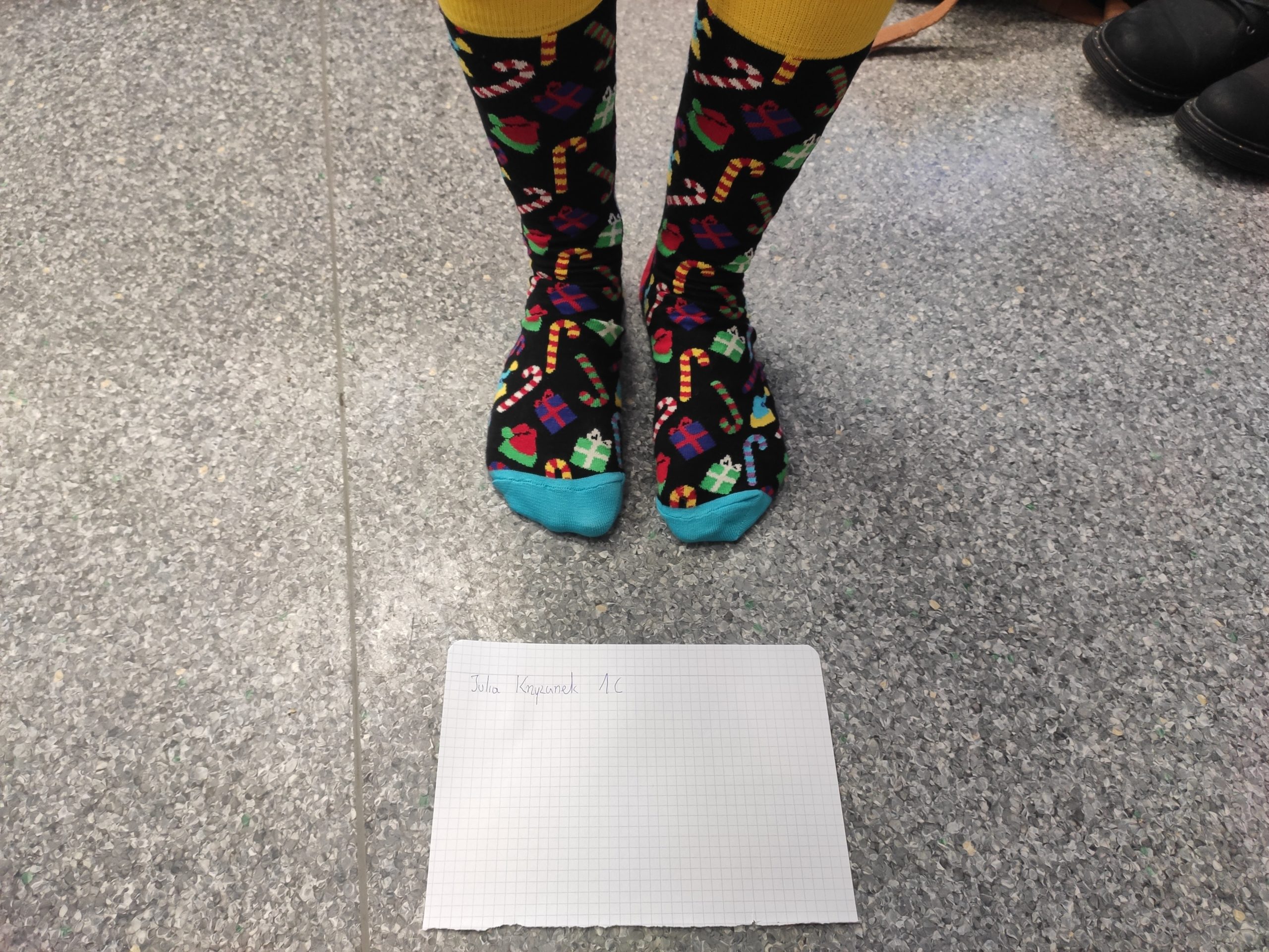 W dniu 6 grudnia 2021 odbył się w naszej szkole mikołajkowy konkurs o nagrodę dyrektora szkoły. Konkurs dotyczył posiadania na własnych nogach najbardziej świąteczno – mikołajkowych skarpet. Udział mógł wziąć każdy zarówno uczeń jak i nauczyciel. Zwycięzcą konkursu została Karina Kubiak z klasy IIb. Gratulujemy 🙂 .
