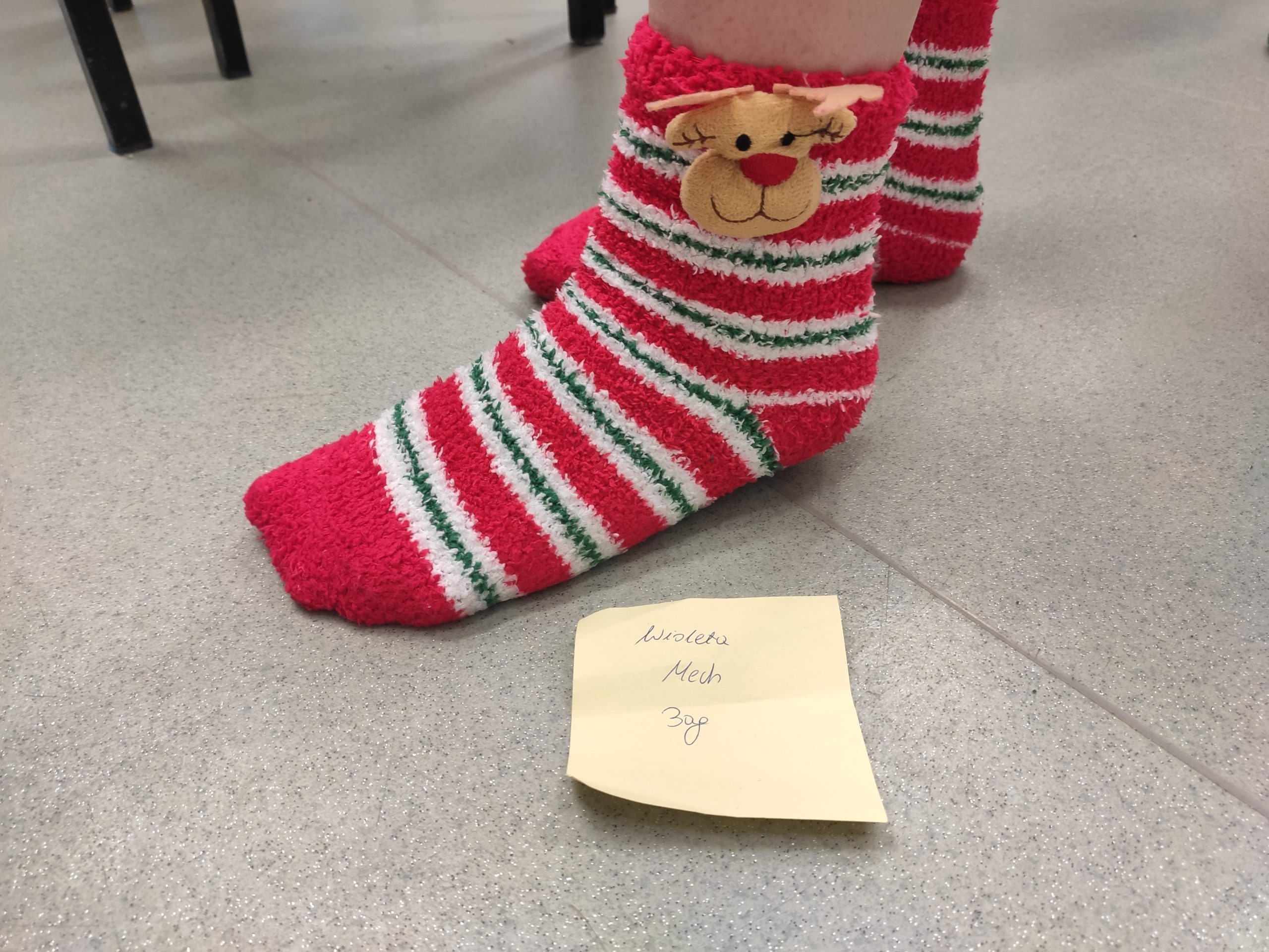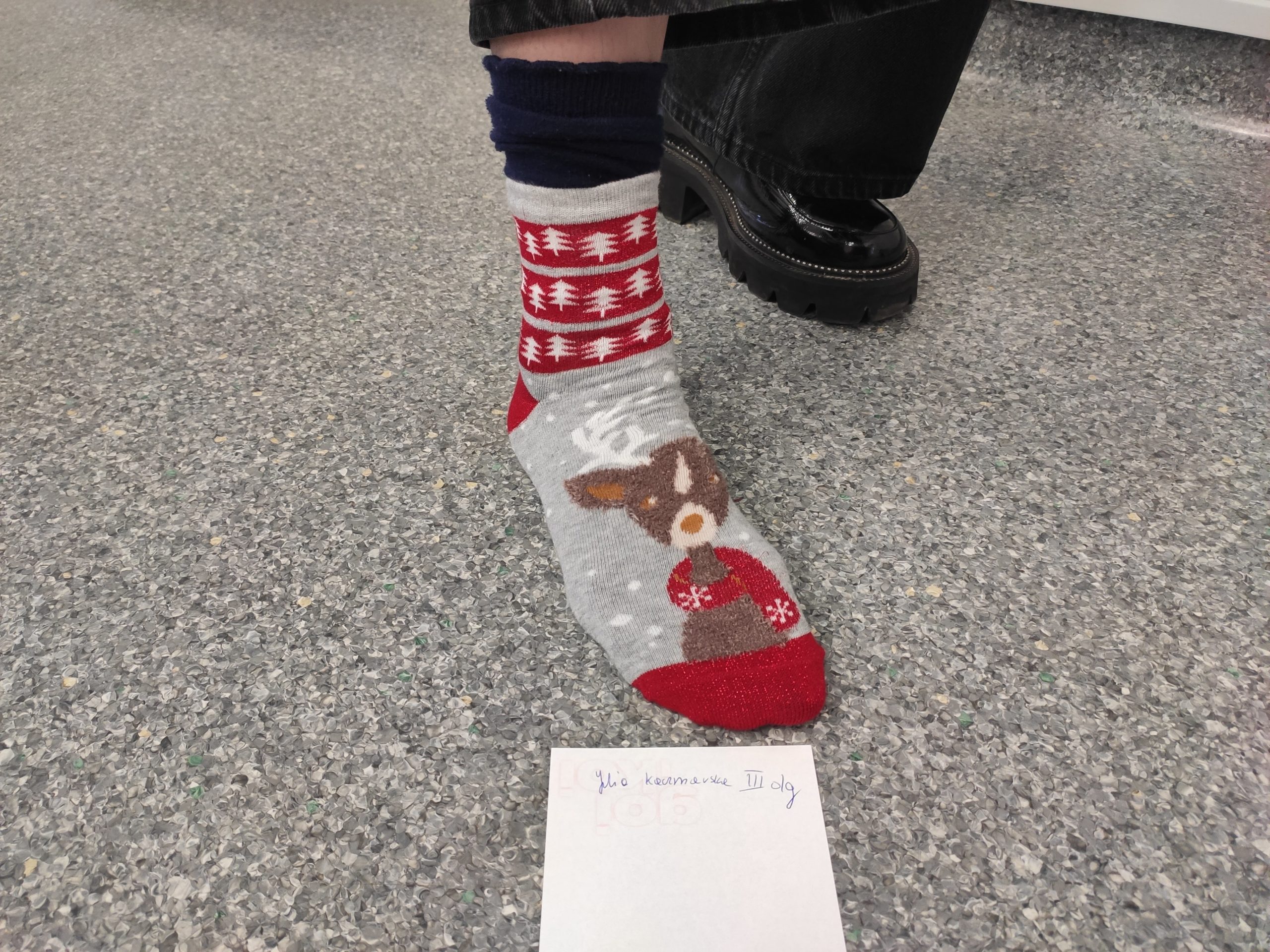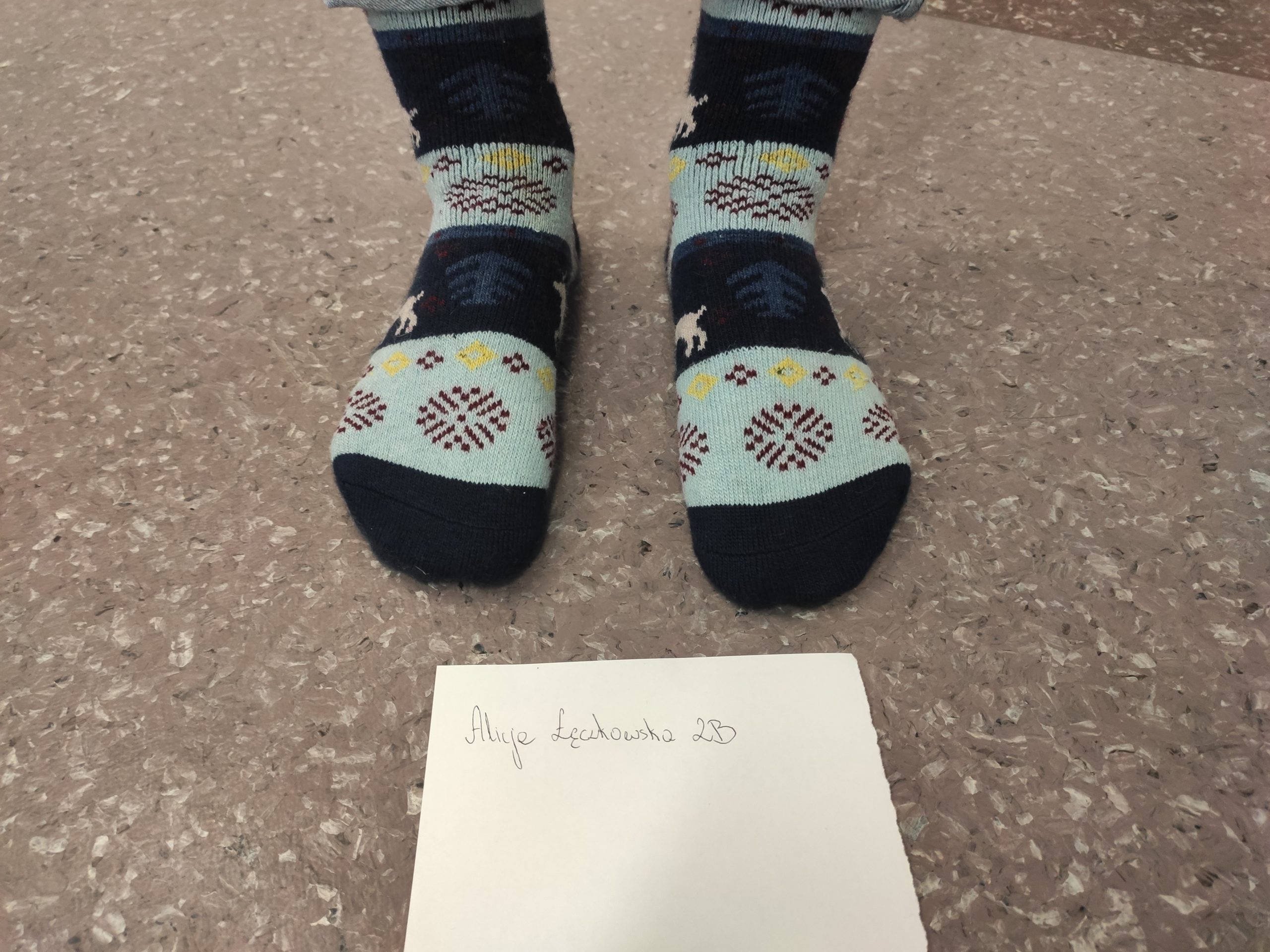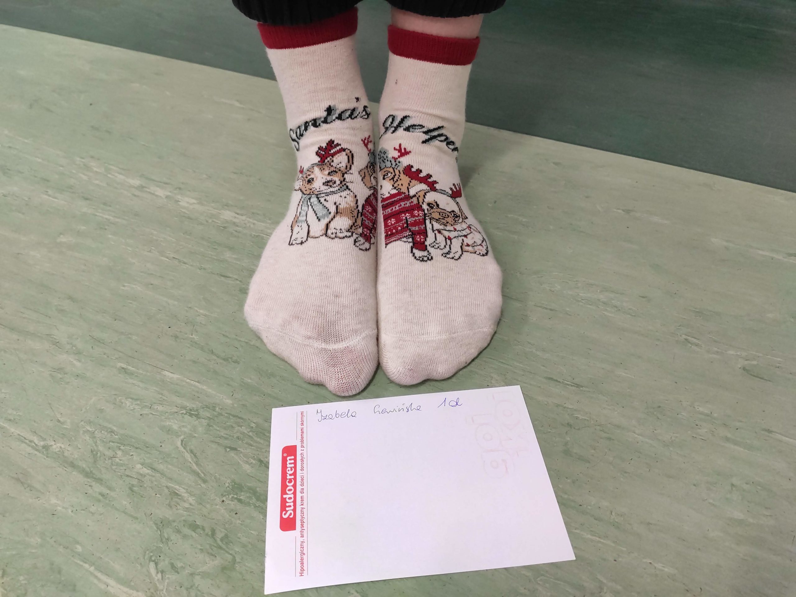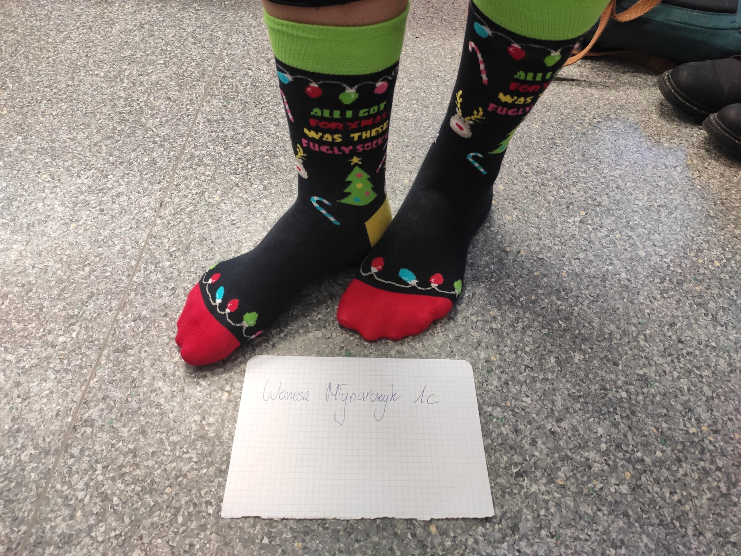 W dniu 6 grudnia 2021 odbył się w naszej szkole mikołajkowy konkurs o nagrodę dyrektora szkoły. Konkurs dotyczył posiadania na własnych nogach najbardziej świąteczno – mikołajkowych skarpet. Udział mógł wziąć każdy zarówno uczeń jak i nauczyciel. Zwycięzcą konkursu została Karina Kubiak z klasy IIb. Gratulujemy 🙂 .