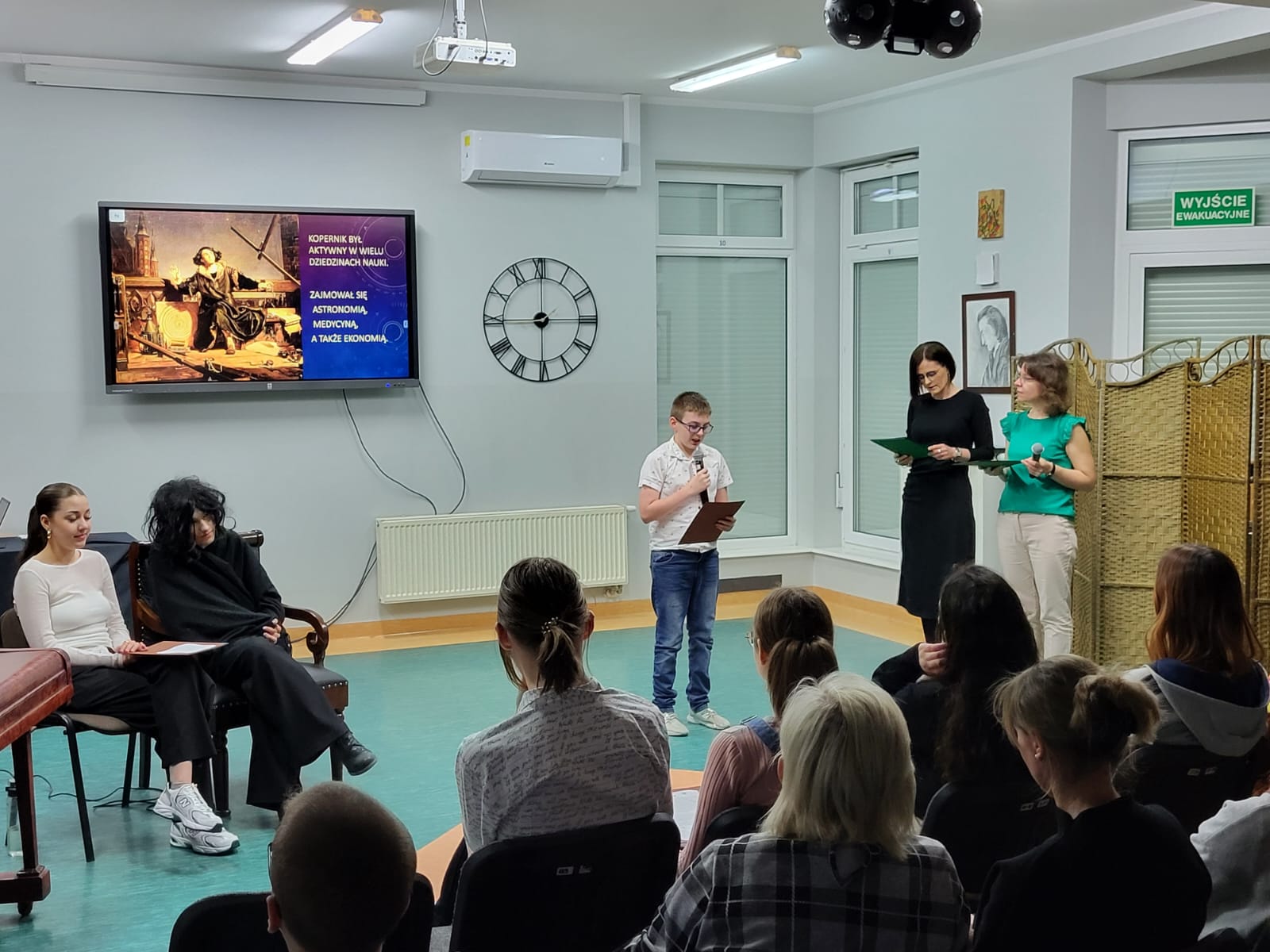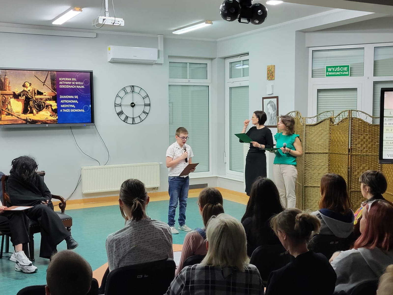 Poświęcona została osobie wybitnego astronoma – Mikołaja Kopernika. W obecnym roku mija 550 lat od jego urodzin. Młodzież XV   i VI Liceum Ogólnokształcącego w Olsztynie, a także ze Szkoły Podstawowej nr4 przybliżyła jego osobę i dokonania. W przedsięwzięcie zaangażowali się nauczyciele uczący w obu szkołach, wykorzystując podczas prezentacji elementy wiedzy polonistycznej, historycznej, astronomicznej (fizycznej), a nawet łaciny.