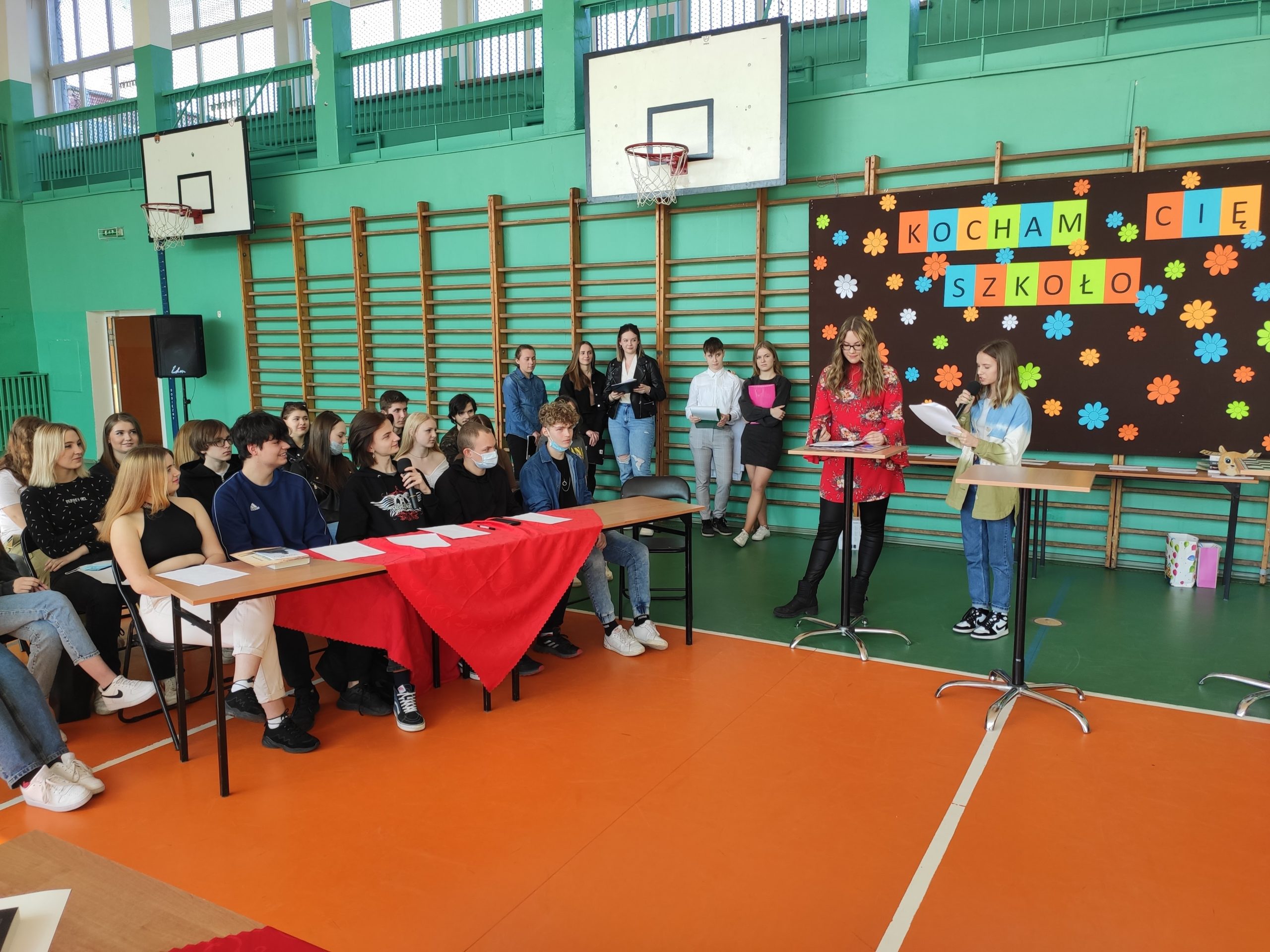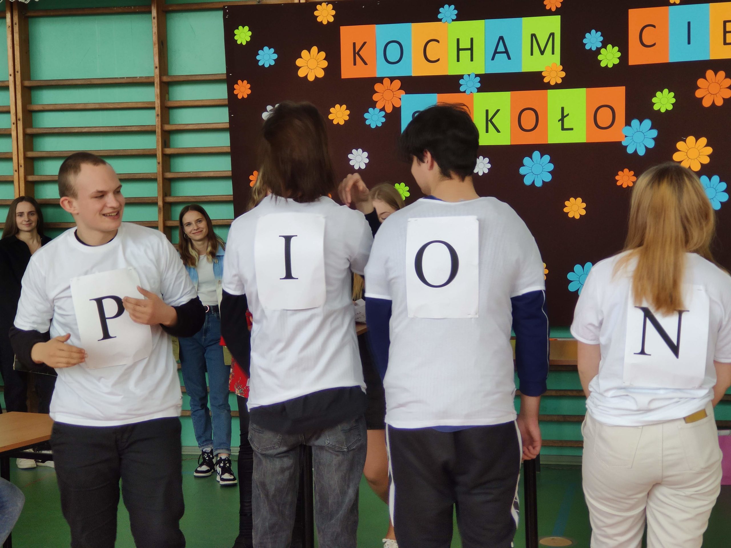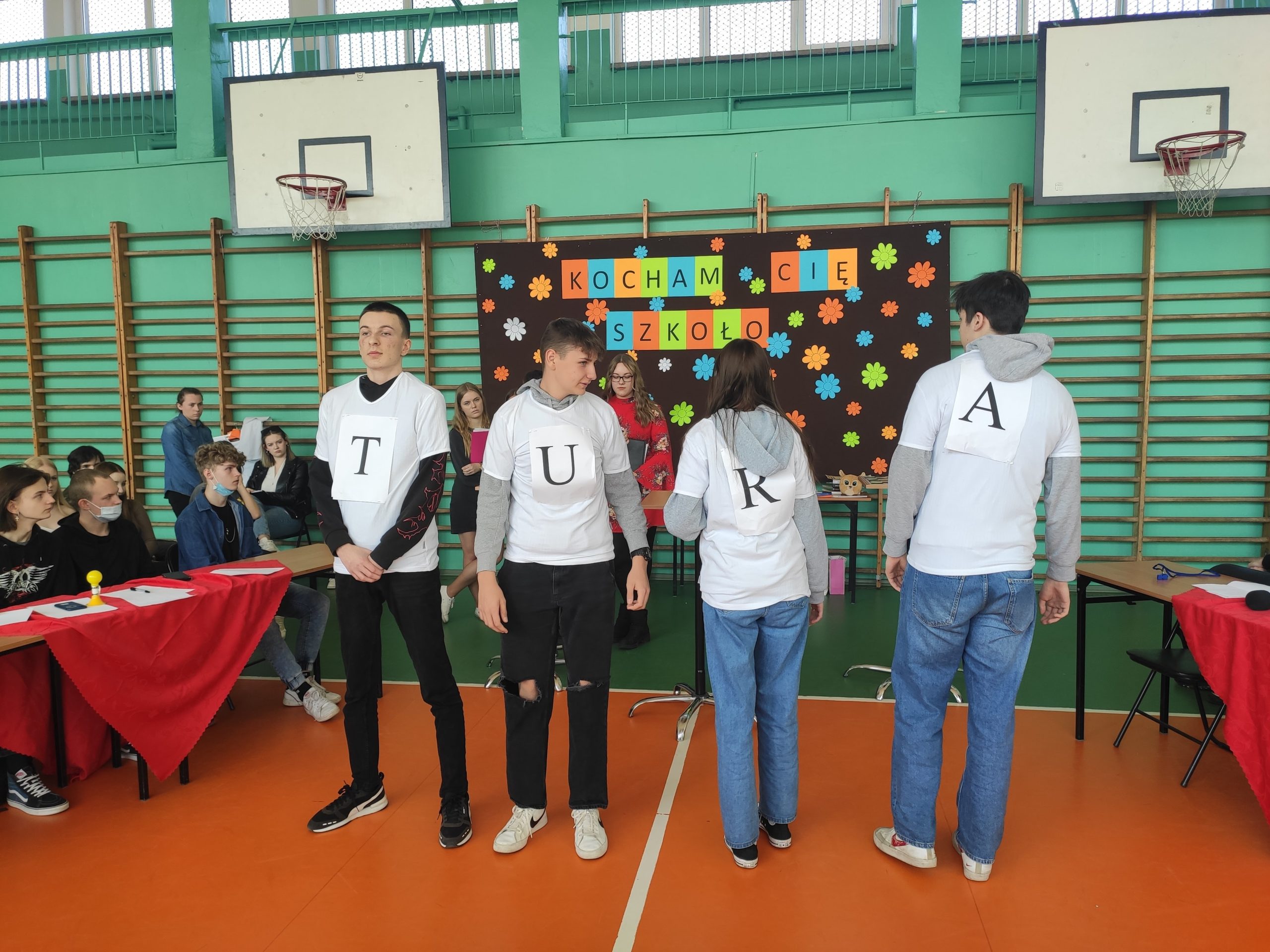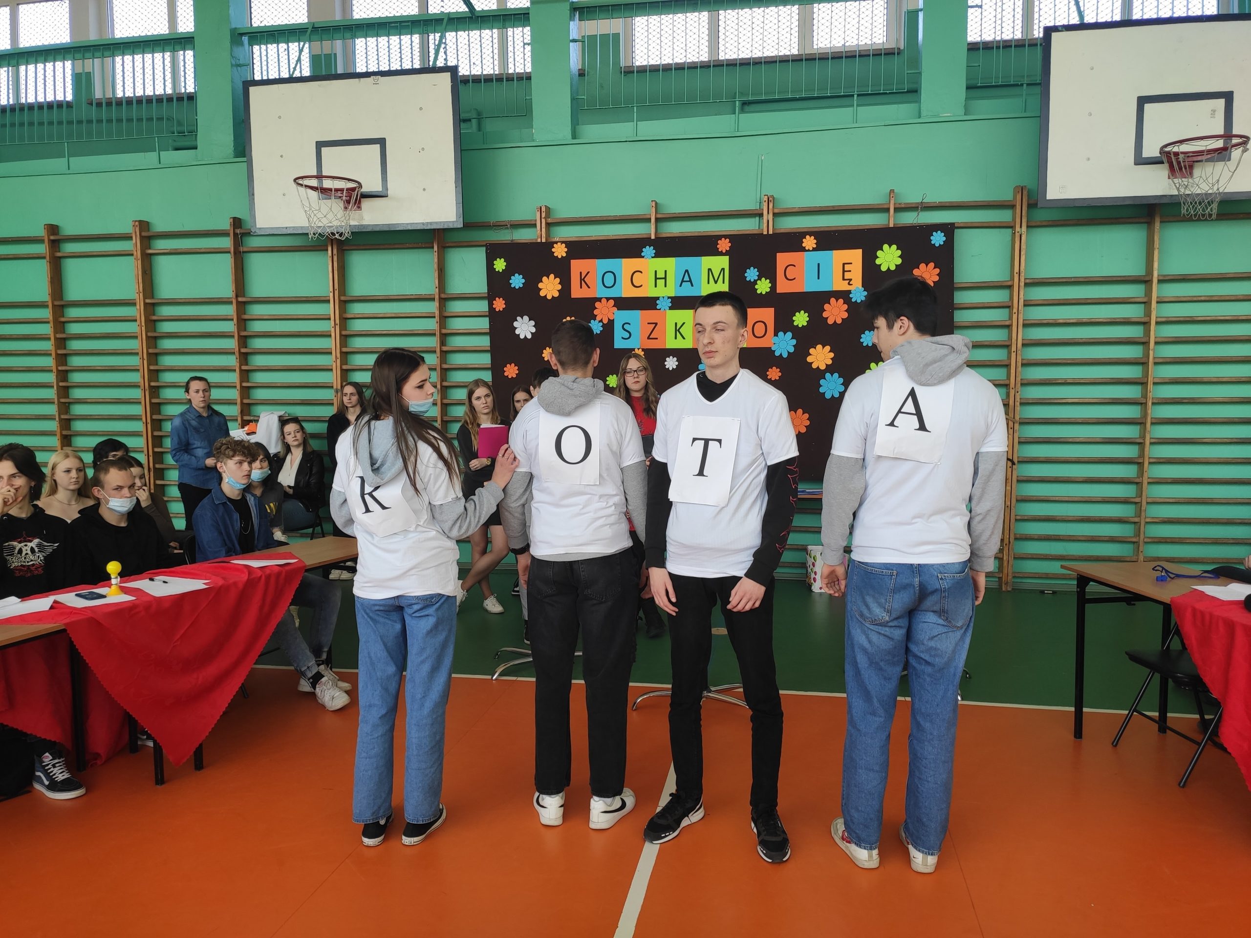 W związku z pierwszym dniem wiosny odbyła się w naszej szkole uroczystość pod nazwą „Kocham Cię, Szkoło”. Na wstępie dyrektor szkoły przekazał kilka ważnych informacji i nagrodził młodzież biorącą udział w różnych konkursach. Następnie rozpoczęła się cześć bardziej rozrywkowa. Przedstawiciele klas pierwszy i drugich rywalizowali ze sobą w ciekawych konkurencjach, gdzie trzeba było wykazać się wiedzą i umiejętnościami z różnych dziedzin. Wszyscy dobrze się bawili, było miło, sympatycznie i całkiem wesoło.