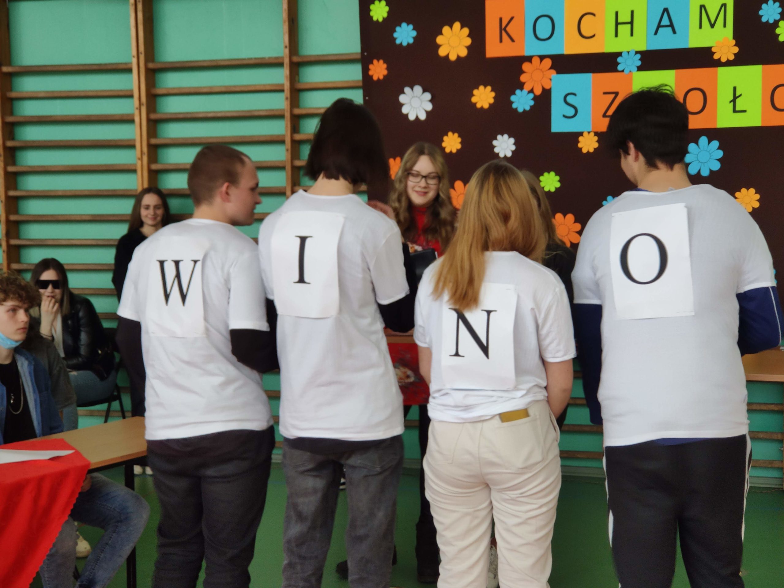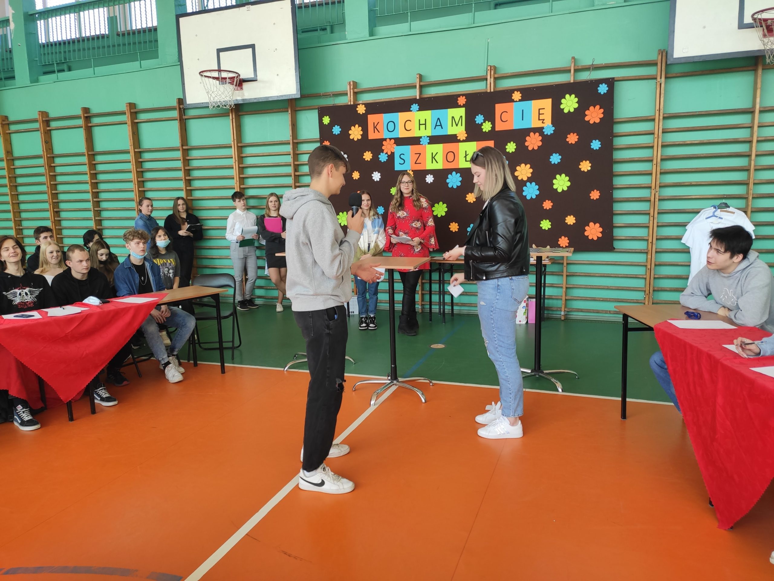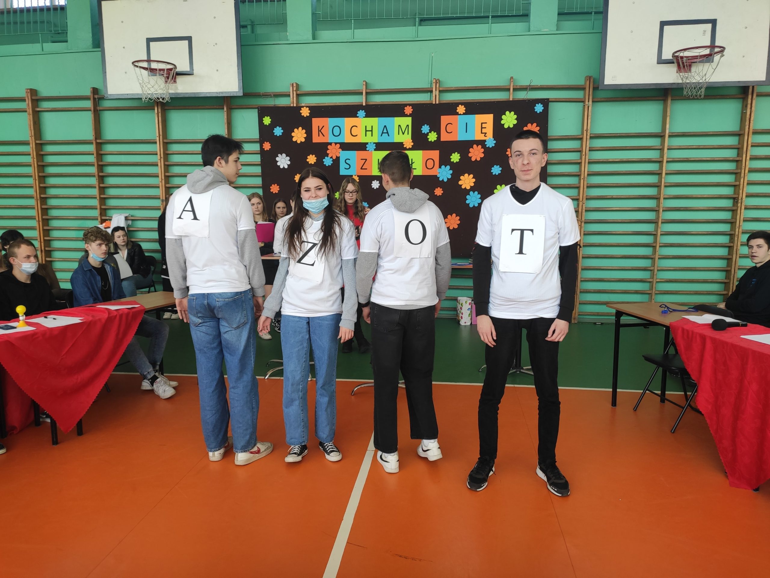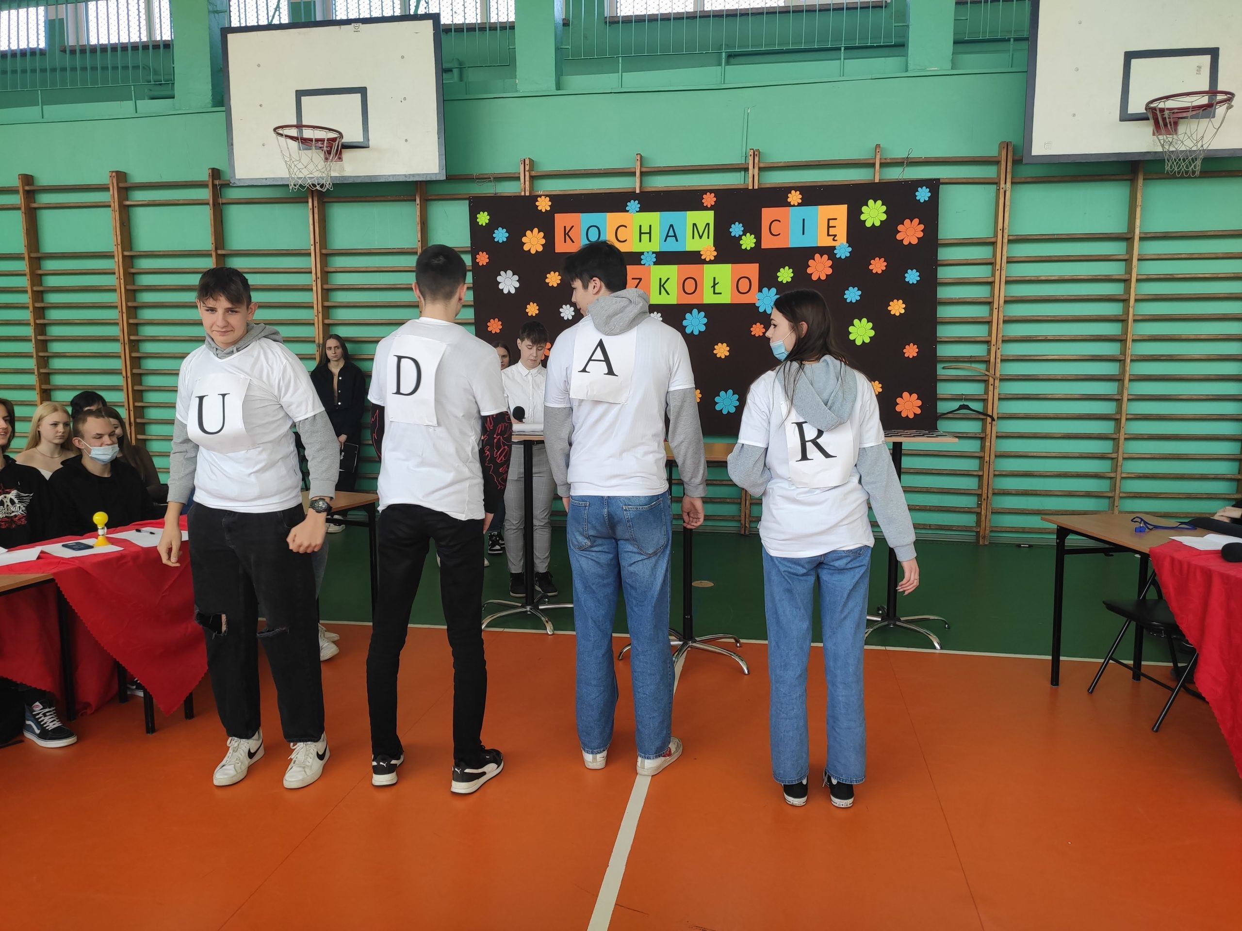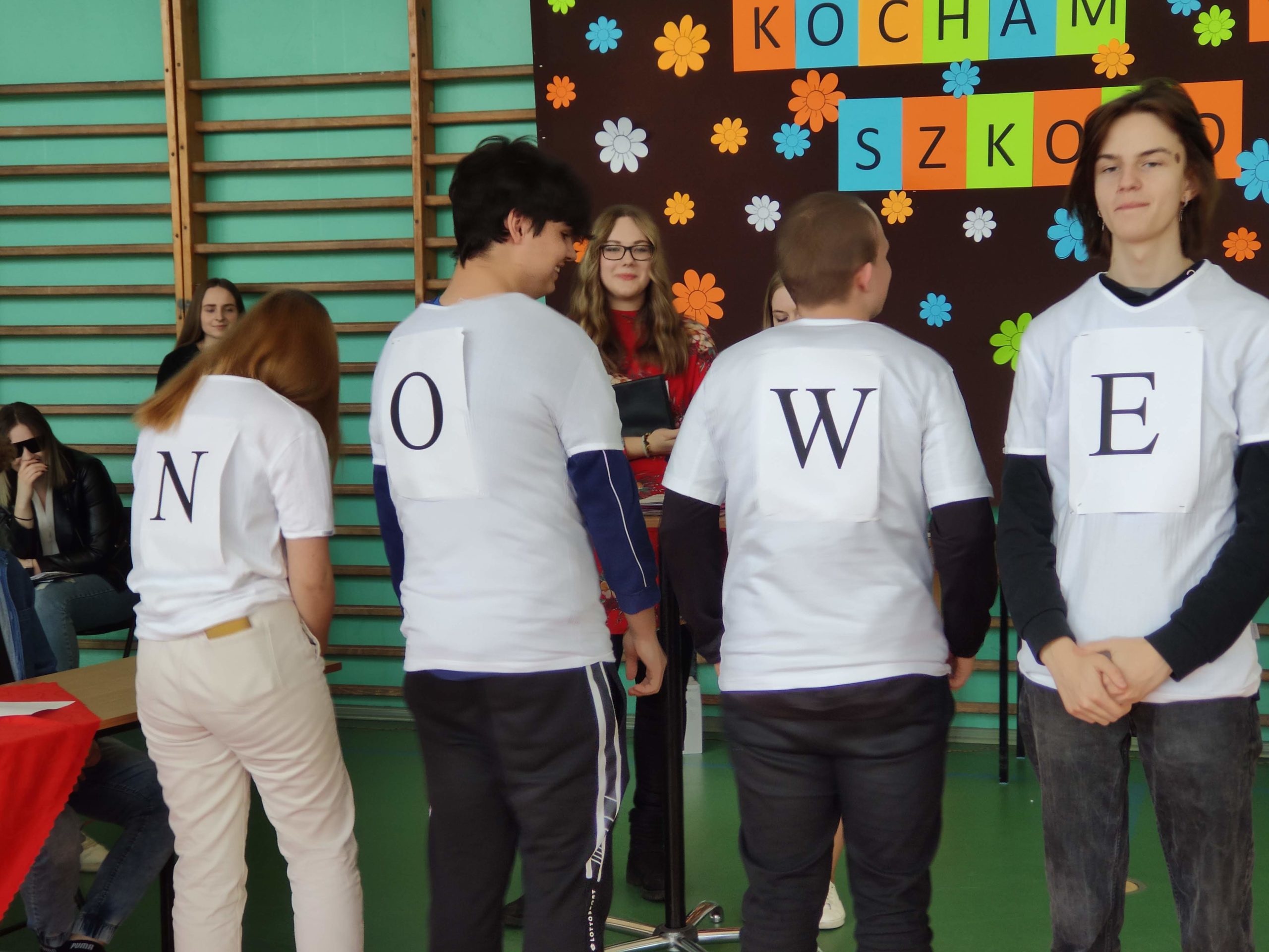 W związku z pierwszym dniem wiosny odbyła się w naszej szkole uroczystość pod nazwą „Kocham Cię, Szkoło”. Na wstępie dyrektor szkoły przekazał kilka ważnych informacji i nagrodził młodzież biorącą udział w różnych konkursach. Następnie rozpoczęła się cześć bardziej rozrywkowa. Przedstawiciele klas pierwszy i drugich rywalizowali ze sobą w ciekawych konkurencjach, gdzie trzeba było wykazać się wiedzą i umiejętnościami z różnych dziedzin. Wszyscy dobrze się bawili, było miło, sympatycznie i całkiem wesoło.