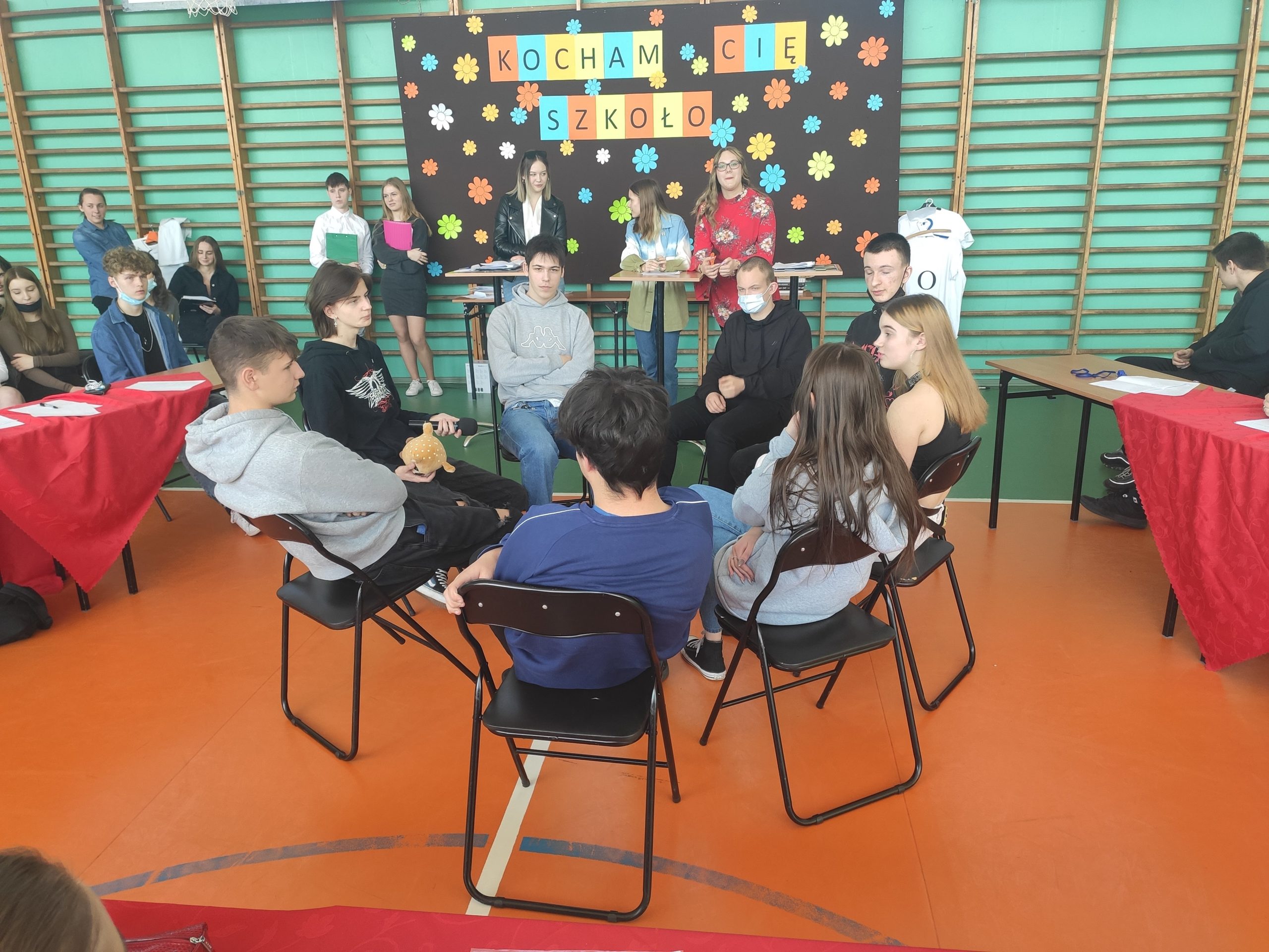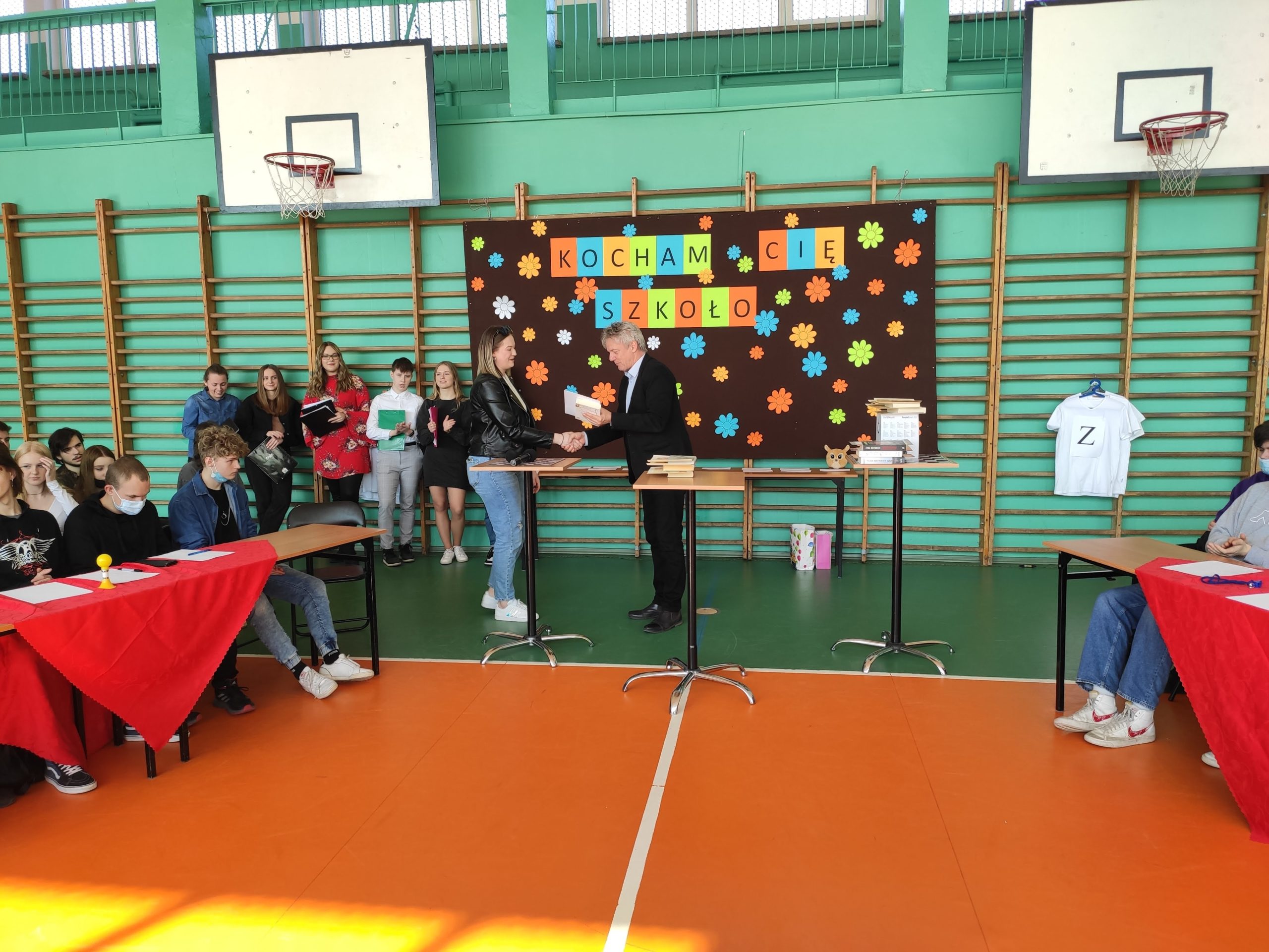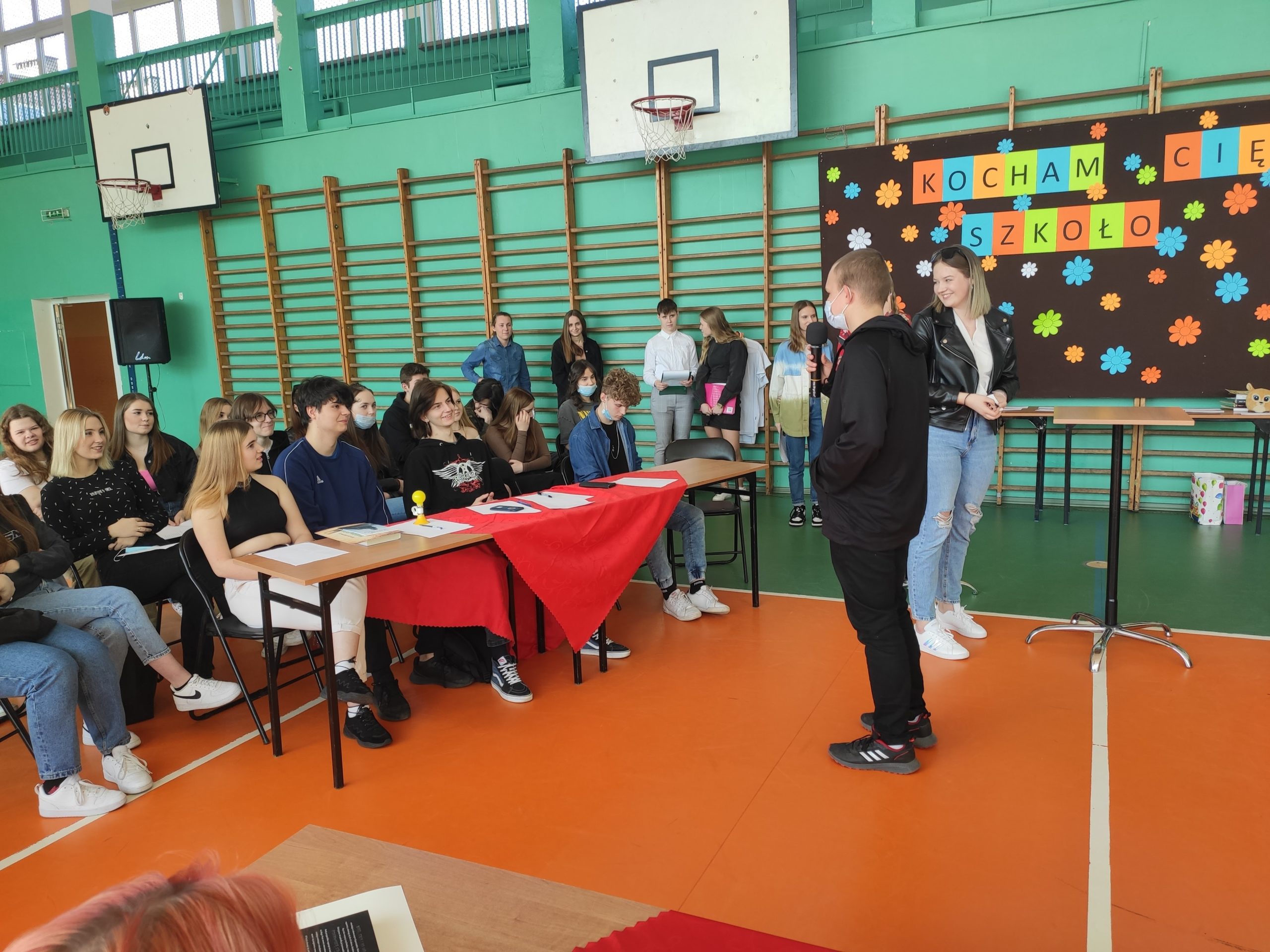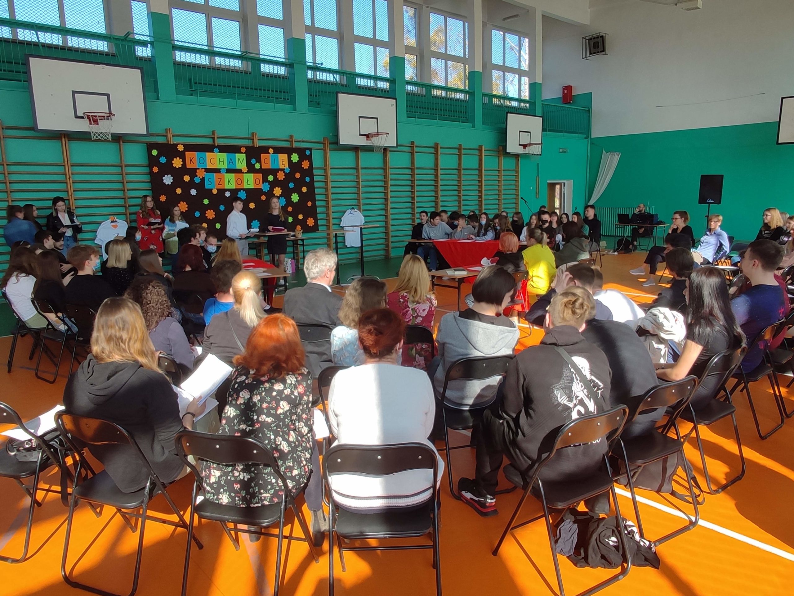 W związku z pierwszym dniem wiosny odbyła się w naszej szkole uroczystość pod nazwą „Kocham Cię, Szkoło”. Na wstępie dyrektor szkoły przekazał kilka ważnych informacji i nagrodził młodzież biorącą udział w różnych konkursach. Następnie rozpoczęła się cześć bardziej rozrywkowa. Przedstawiciele klas pierwszy i drugich rywalizowali ze sobą w ciekawych konkurencjach, gdzie trzeba było wykazać się wiedzą i umiejętnościami z różnych dziedzin. Wszyscy dobrze się bawili, było miło, sympatycznie i całkiem wesoło.