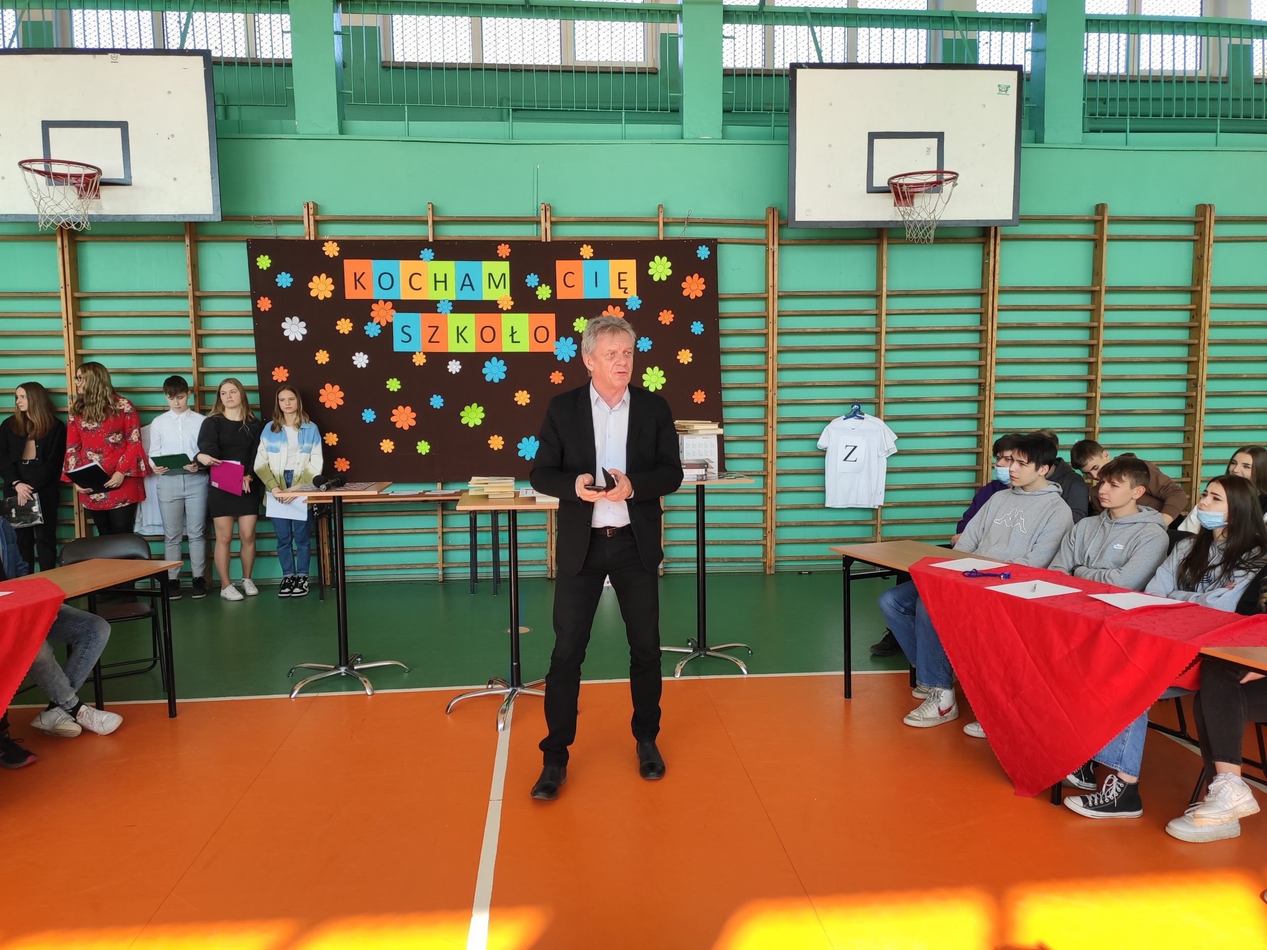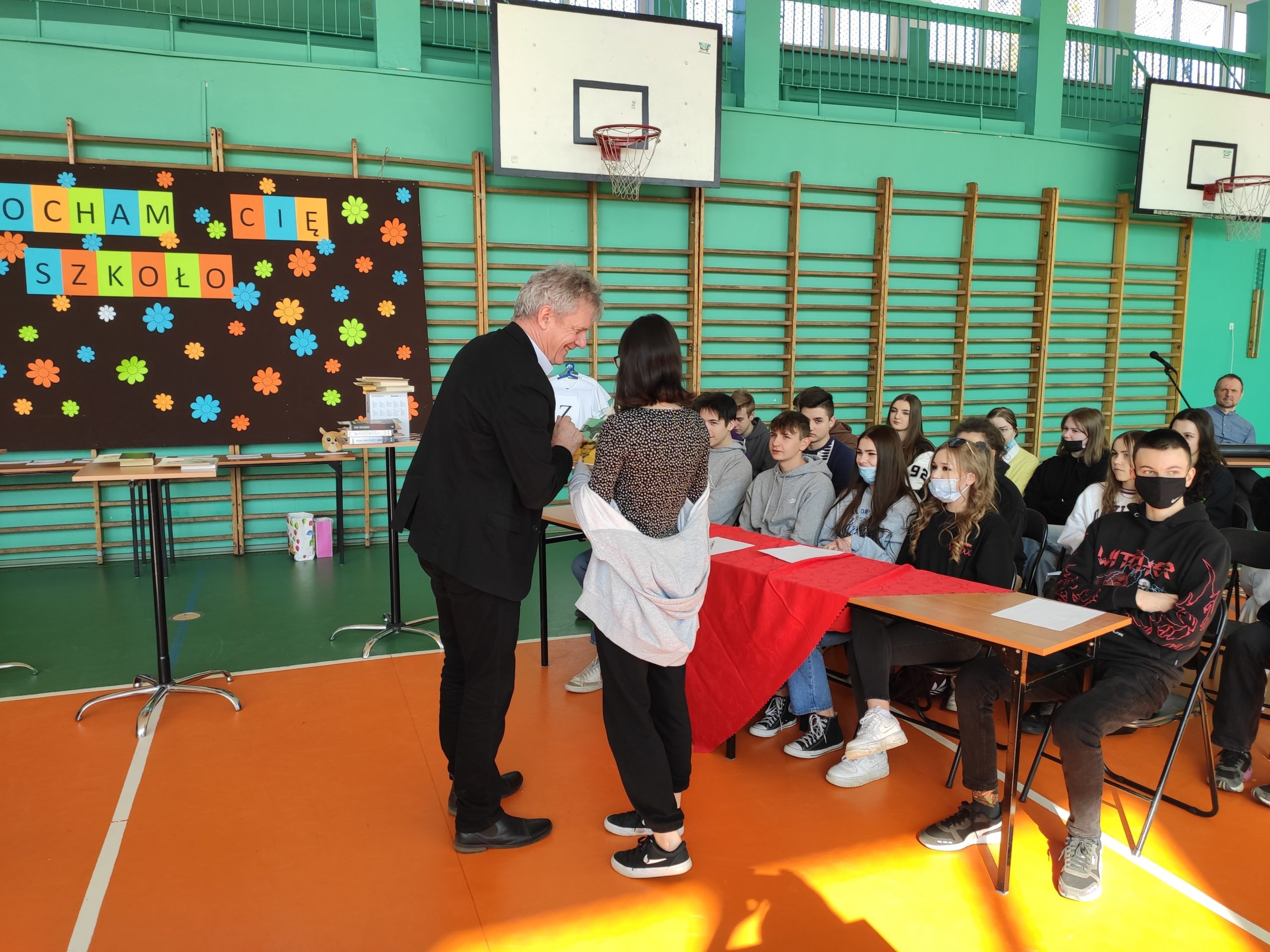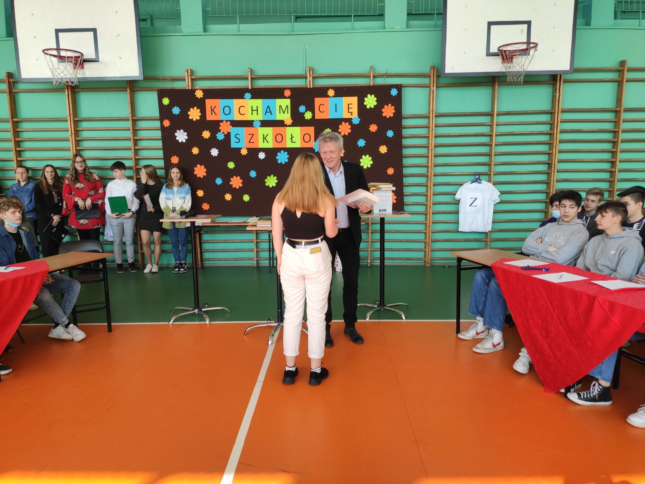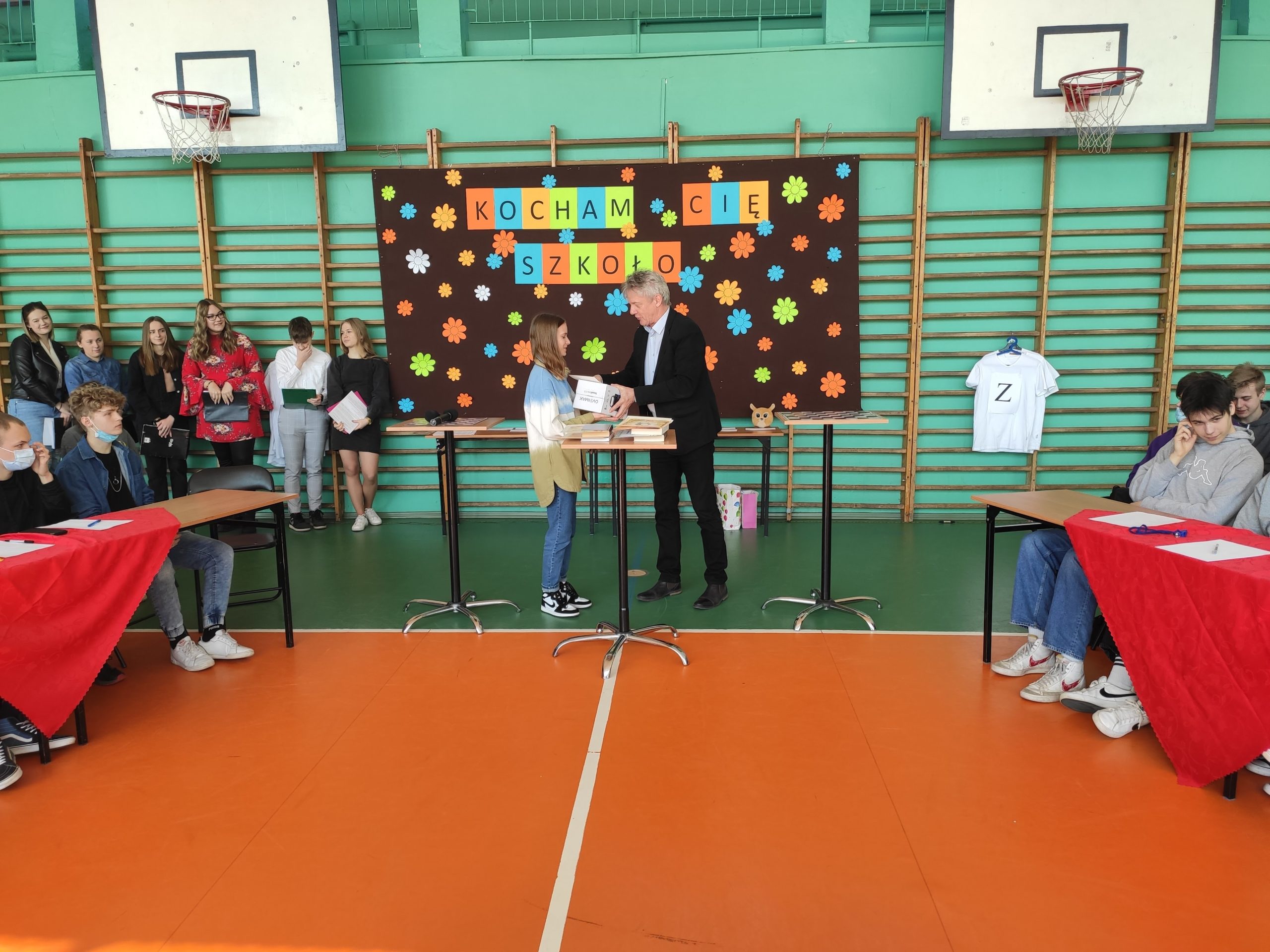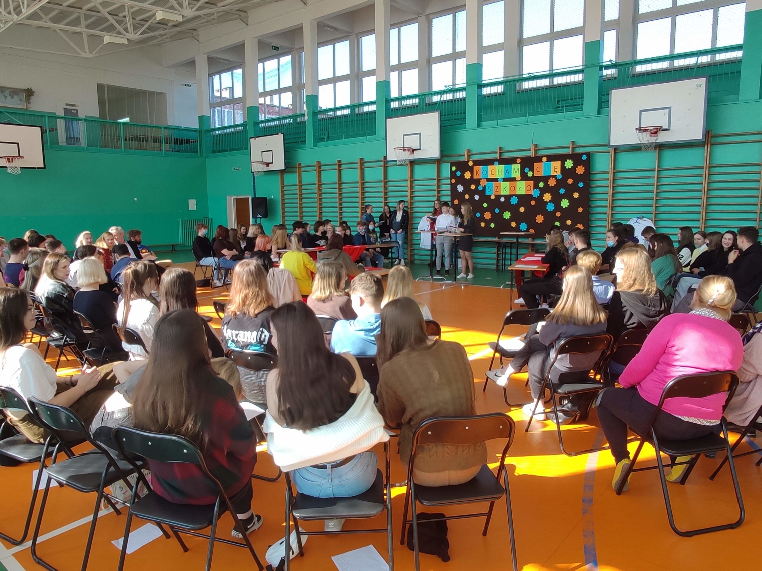 W związku z pierwszym dniem wiosny odbyła się w naszej szkole uroczystość pod nazwą „Kocham Cię, Szkoło”. Na wstępie dyrektor szkoły przekazał kilka ważnych informacji i nagrodził młodzież biorącą udział w różnych konkursach. Następnie rozpoczęła się cześć bardziej rozrywkowa. Przedstawiciele klas pierwszy i drugich rywalizowali ze sobą w ciekawych konkurencjach, gdzie trzeba było wykazać się wiedzą i umiejętnościami z różnych dziedzin. Wszyscy dobrze się bawili, było miło, sympatycznie i całkiem wesoło.
