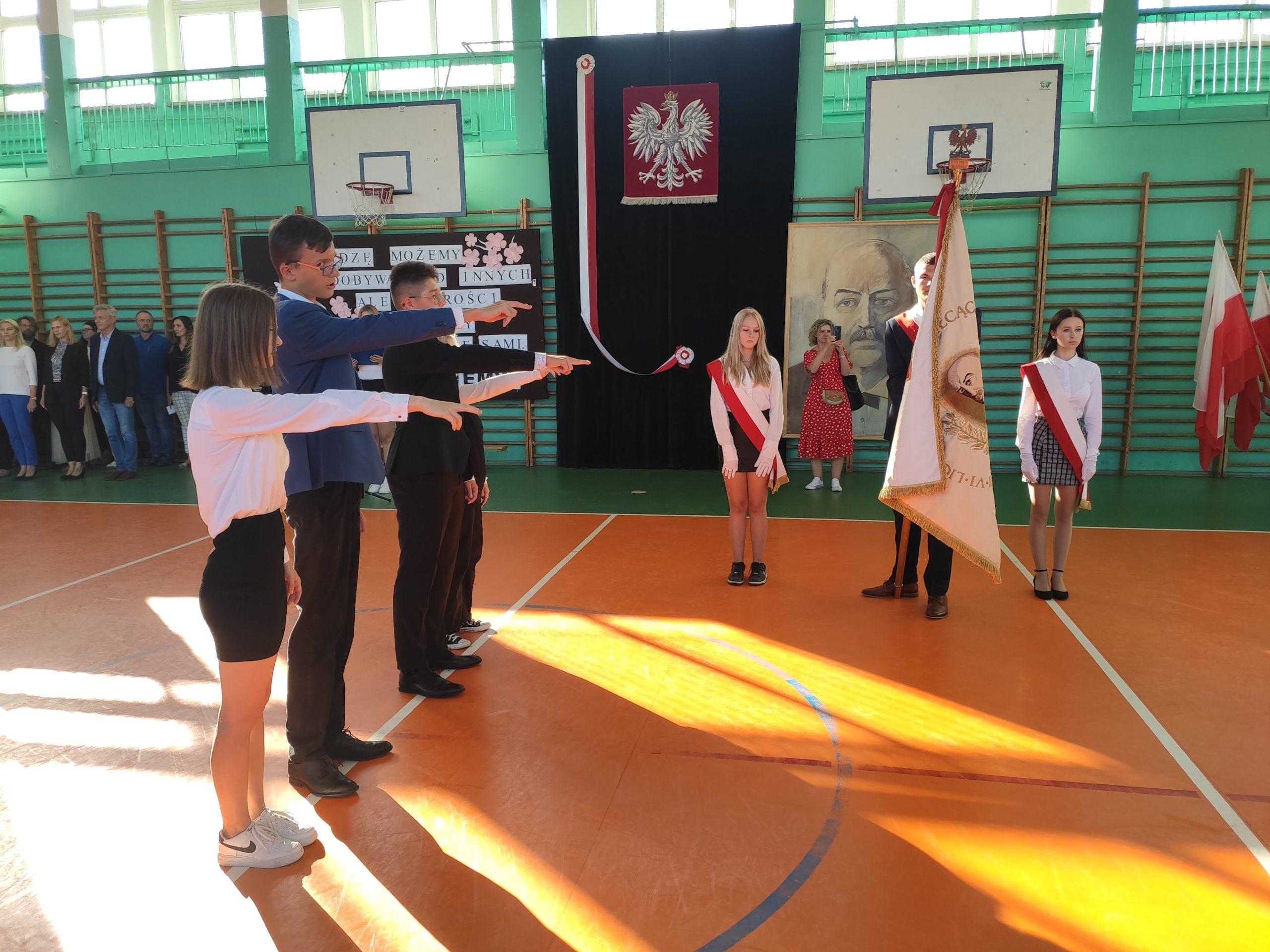 W dniu 8 września 2022 odbyło się ślubowanie klas pierwszych. Uroczystość zaszczyciło wielu rodziców, którzy z zaciekawieniem oglądali całe wydarzenie. Pan dyrektor przywitał zgromadzonych, powiedział kilka ważnych słów i rozpoczęło się samo ślubowanie. A oto jak wyglądała uroczystość…