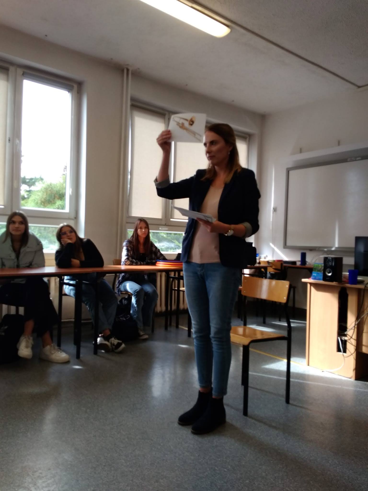 W piątek 30 września 2022 gościem w naszej szkole była pani Emilia Arciszewska. Spotkała się z młodzieżą, by opowiedzieć o swojej pracy zawodowej i podzielić wspomnieniami związanymi z nauką. Pani Emilia ukończyła studia muzyczne na Uniwersytecie Warmińsko-Mazurskim. Gra na pianinie, jest wokalistką, pracowała także w dyrygenturze chóralnej. Obecnie prowadzi Arciszewscy Art Studio, w którym zajmuje się edukacją muzyczną dzieci. Praca sprawia jej wiele radości, której i my doświadczyliśmy podczas tego spotkania. Pani Emilia Arciszewska przyniosła przedmioty, które na co dzień wykorzystuje i zaproponowała nam ćwiczenia sensoryczne, ćwiczenia na poczucie rytmu i podzielność uwagi. Podkreśliła terapeutyczną rolę muzyki. Przekazała nam także ważną życiową lekcję, a mianowicie, że nigdy nie należy się poddawać i trzeba dać sobie przyzwolenie na popełnianie błędów. Są one wpisane w nasze życie i nie sposób ich uniknąć. Trzeba wierzyć w siebie i obierać te cele, które sprawiają, że czujemy się szczęśliwi.