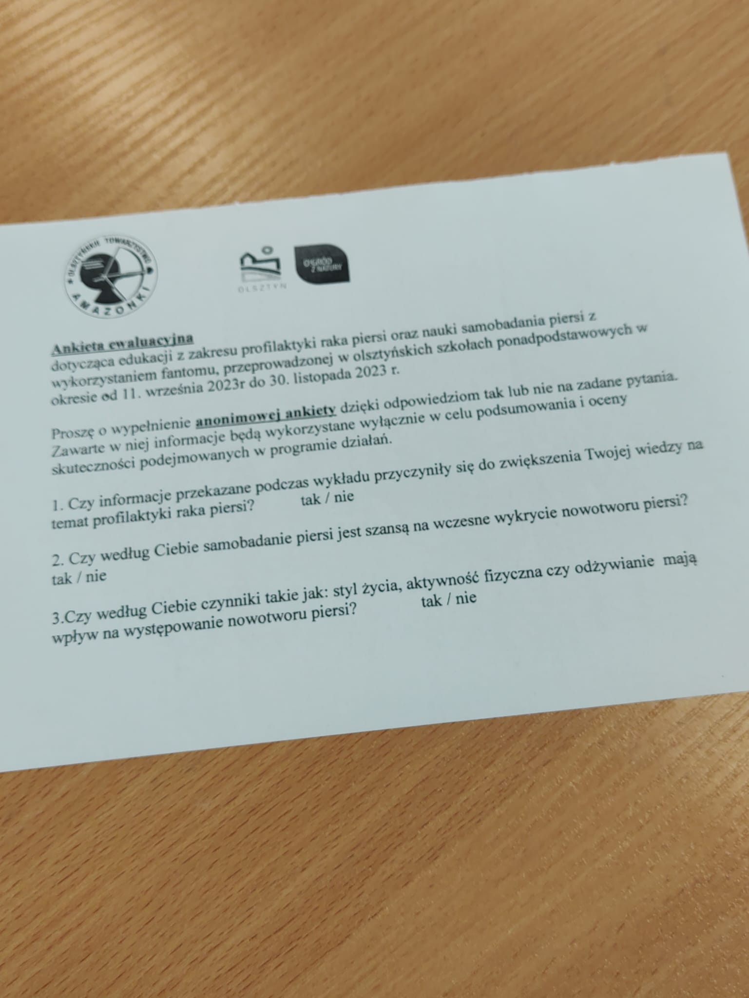 W dniu 6 października W naszej szkole odbyło się spotkanie z olsztyńskimi Amazonkami .Spotkanie dotyczyło samobadania piersi oraz profilaktyki nowotworowej .Na kolejne zapraszamy 11 października ,głównie klasy czwarte.