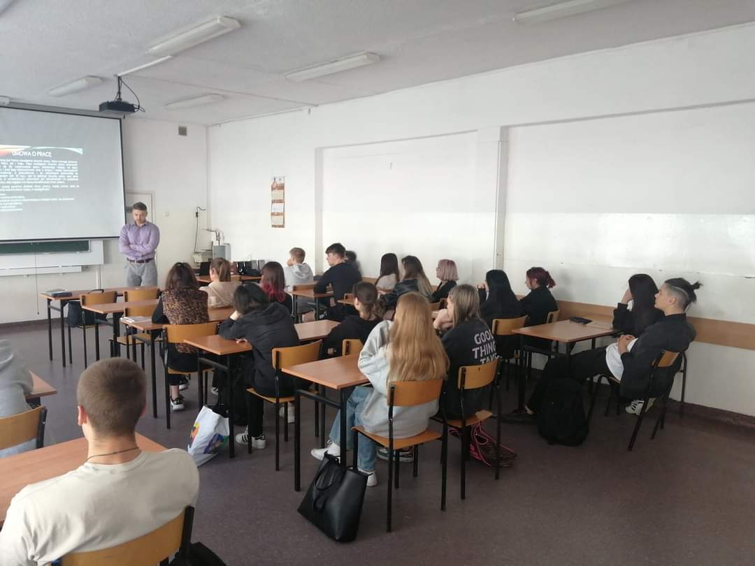 Dnia 17 i 25 maja 2022 r. klasa IIIA i IIIB na lekcji podstaw przedsiębiorczości gościła radcę prawnego – pana Marka Lewandowskiego. Młodzież uczestnicząca w spotkaniu wzbogaciła swoją wiedzę o wiele ważnych informacji odnośnie zatrudnienia oraz prawnych aspektów umowy o pracę. Dowiedziała się także, jakie prawa posiada osoba zatrudniona. Znajomość prawa pracy może się przydać już niebawem.