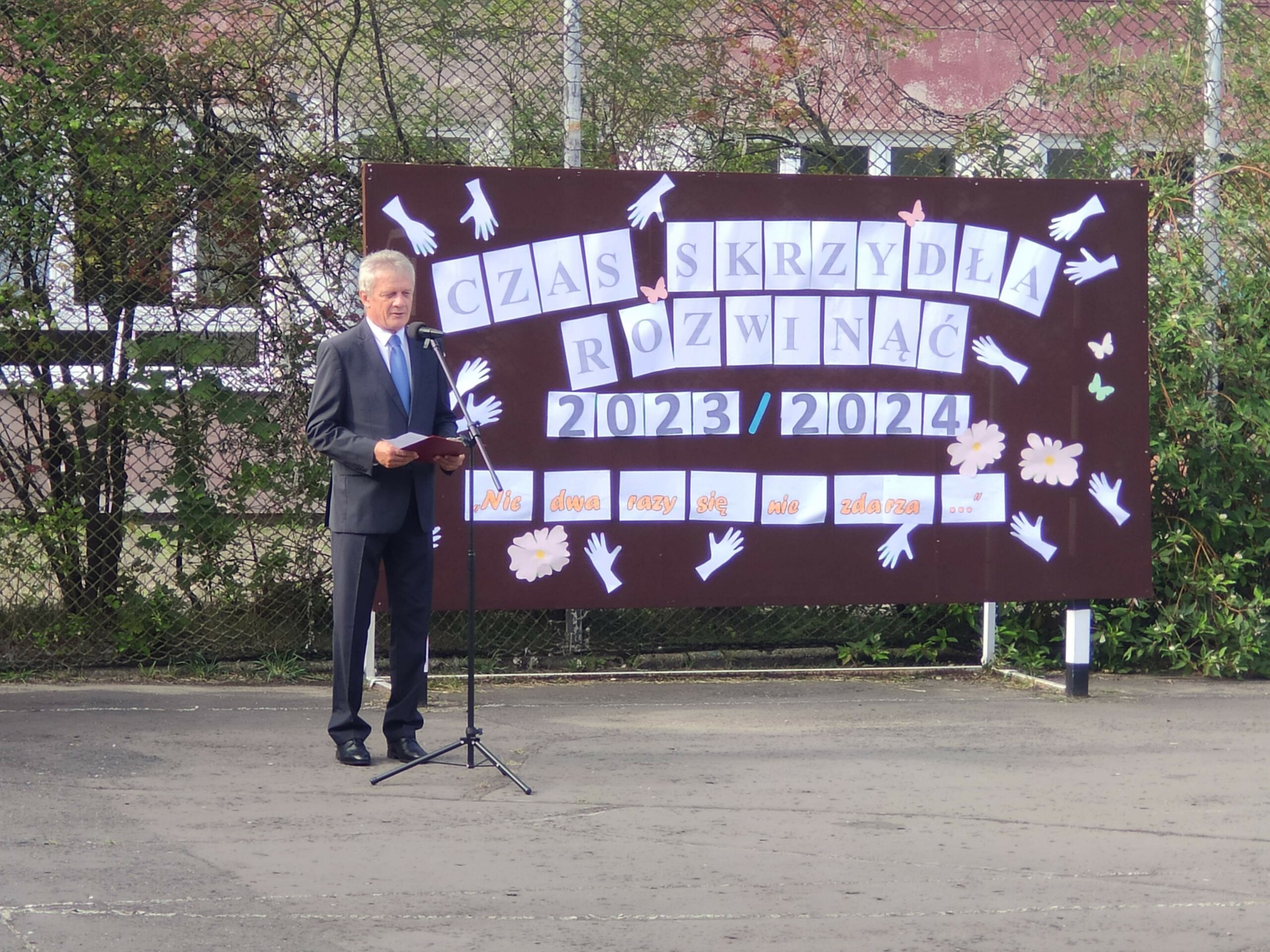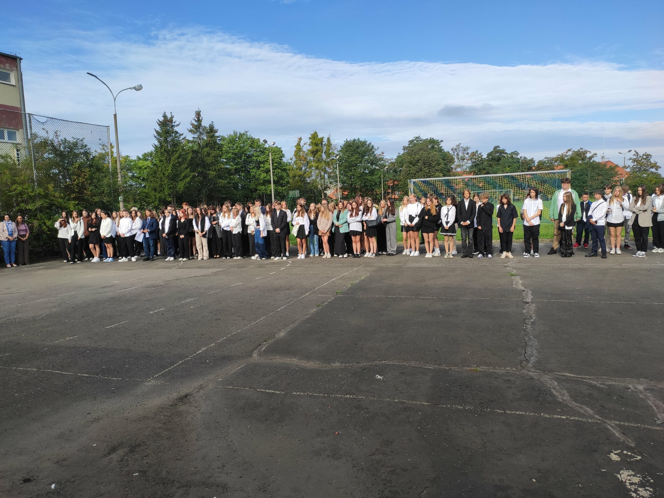Dzisiaj oficjalnie rozpoczęliśmy rok szkolny. Na boisku szkolnym, gdzie spotkały się tylko klasy pierwsze, spotkanie rozpoczął pan dyrektor. Przekazał uczniom najważniejsze informacje oraz przedstawił wszystkich nauczycieli. Uczniowie poznali swoich wychowawców oraz koleżanki i kolegów z klasy. A tak to wszystko wyglądało…
