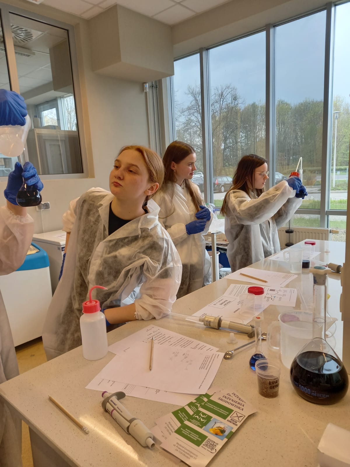 W dniu 27.04 klasa 3d brała udział w warsztatach laboratoryjnych na UW-M zorganizowanych przez prof. Tomasza Juźwiaka z Katedry Inżynierii Środowiska