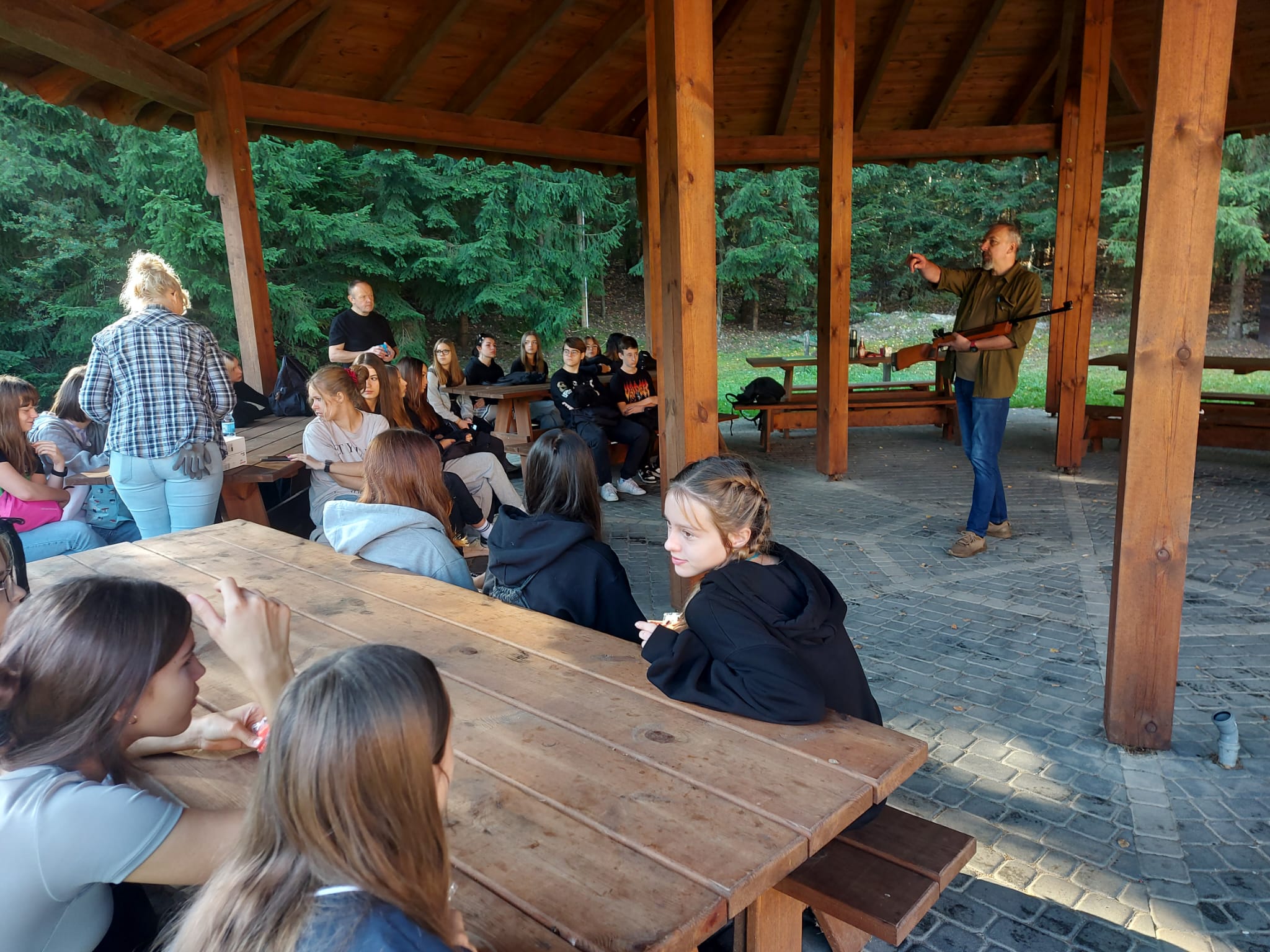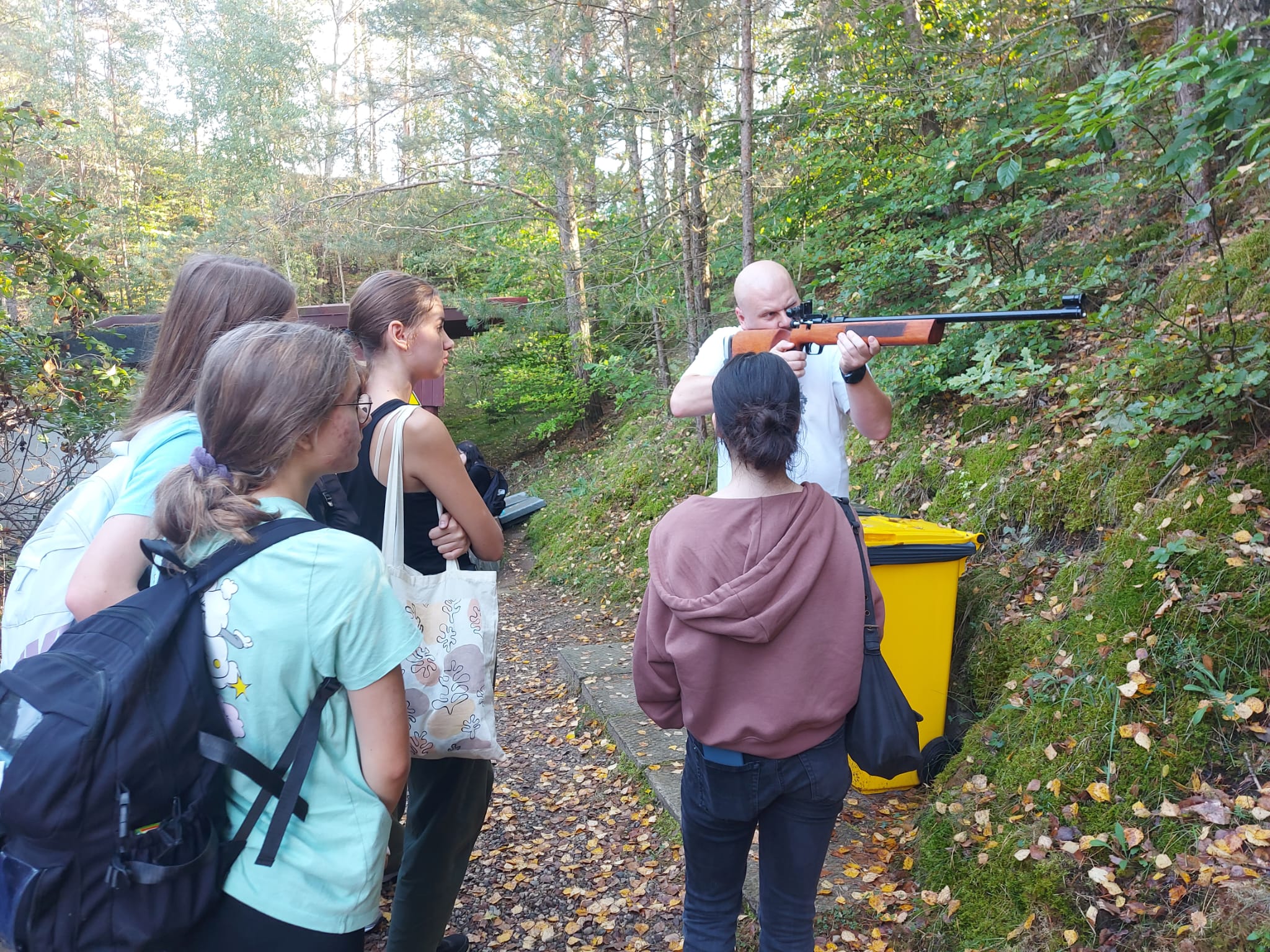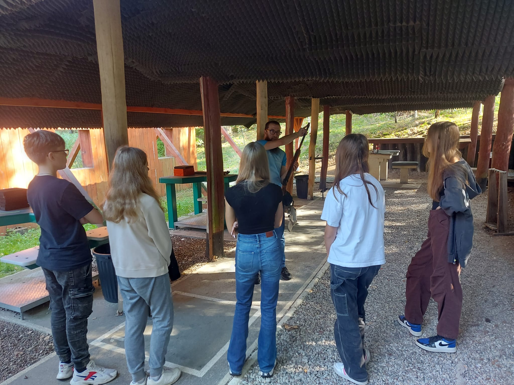 W dniu 27.09.2023 r. uczniowie klas pierwszych wraz z wychowawcami, spędzili dzień na Strzelnicy Myśliwskiej PZŁ im. Władysława Komorowskiego w Olsztynie. W ramach zajęć edukacji dla bezpieczeństwa, pod okiem wykwalifikowanej kadry strzeleckiej, młodzież szkoliła się w zakresie strzelectwa. Z ogromnym zaangażowaniem uczestniczyła w zajęciach. Nauczyła się zasad bezpieczeństwa na strzelnicy, sposobu składania i rozkładanie broni, postaw strzeleckich, poruszanie się z bronią, ćwiczyła celności strzałów. Podczas trwania zajęć, był czas również na integrację klas. Młodzież brała udział w zabawach ruchowych, podejmowała rozmowy na wiele tematów przy wspólnym ognisku. Pogoda nam dopisała, a nauka strzelania z broni palnej to doświadczenie, które dostarczyło naszym uczniom mnóstwa pozytywnych emocji. Dziękujemy całej kadrze instruktorskiej, PZŁ im. Władysława Komorowskiego w Olsztynie, wszystkim wychowawcom klas pierwszych za wsparcie w organizacji dzisiejszych zajęć.