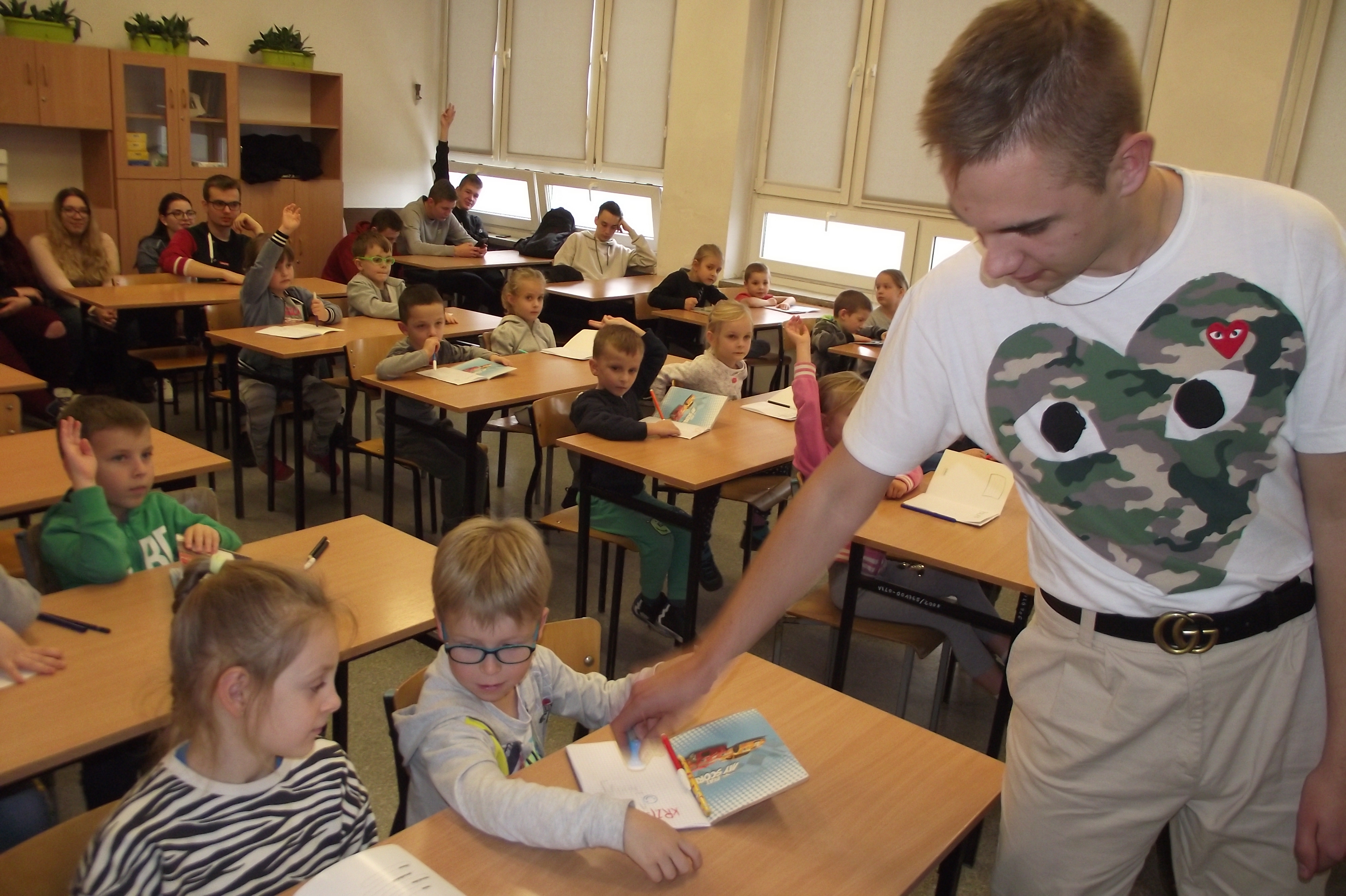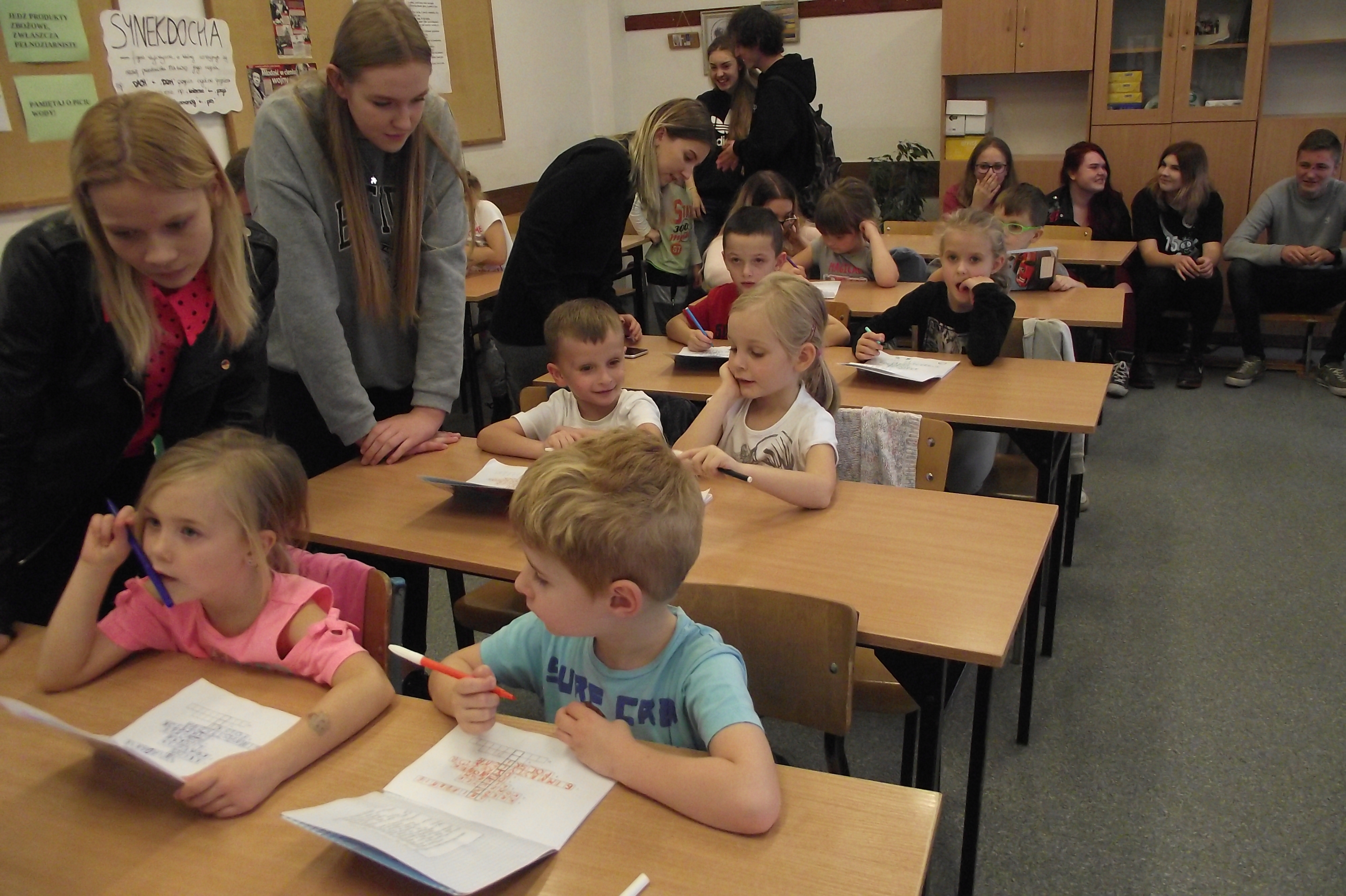 24 października 2019 w ramach kontynuacji zajęć „Czytanki –fikanki” i wymiany pokoleń, klasa IIIa i IId spotkała się z przedszkolakami z Przedszkola Miejskiego nr 17 w Olsztynie. Tym razem to dzieci pod opieką swojej wychowawczyni – pani Agnieszki Piziorskiej odwiedziły VI Liceum Ogólnokształcące. Podczas spotkania poznały tajniki zawodu nauczyciela i dowiedziały się, jak wygląda nauka i praca w szkole. Uczestniczyły w przygotowanej  dla nich lekcji języka polskiego, podczas której wysłuchały książki  pt. „Franklin idzie do szkoły” P. Bourgeois, B. Clark, rozwiązywały krzyżówkę, dzieliły się przemyśleniami o nauce, szkole, nauczycielach. Częścią spotkania było również zwiedzanie szkoły. Dzieci odwiedziły szkolną bibliotekę, sekretariat, gabinet dyrektora i pedagoga, salę gimnastyczną, salę do nauki geografii i przyrody. Rozmawiały z osobami pracującymi w szkole w charakterze nauczyciela, dyrektora, bibliotekarza, pedagoga. Spotkanie zorganizowała i poprowadziła Katarzyna Dubicka.