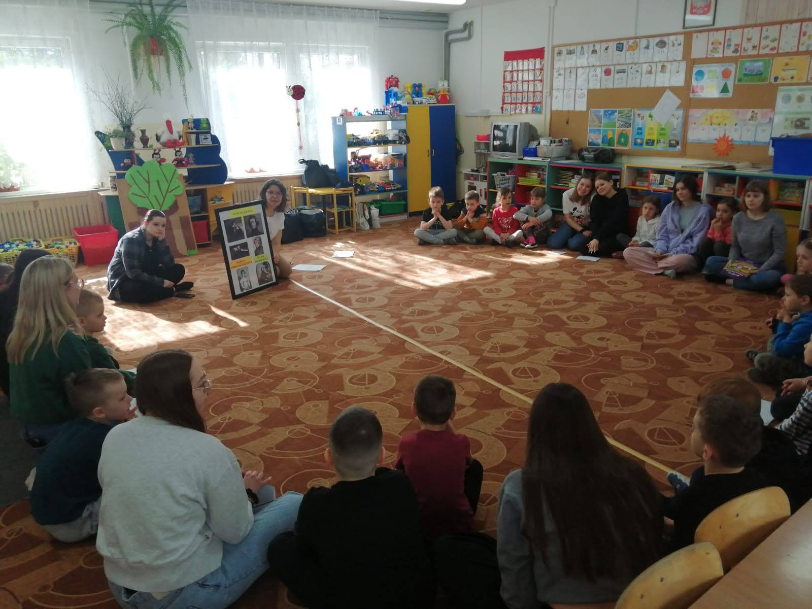 Nareszcie po długiej przerwie spowodowanej pandemią mogliśmy odwiedzić dzieci z zaprzyjaźnionego Przedszkola Miejskiego nr 17 w Olsztynie. Po opieką p. Katarzyny Dubickiej i p. Edyty Gołębiak uczennice klasy IIIb i IIId poprowadziły dla przedszkolaków zajęcia służące popularyzacji twórczości Adama Mickiewicza, a tym samym uczciły ROK ROMANTYZMU POLSKIEGO. Dzieci poznały wiersz pt. „Przyjaciele”, by następnie porozmawiać o znaczeniu przyjaźni i wzajemnej pomocy w życiu każdego z nas. Wspólnie stworzyliśmy także „drzewko przyjaźni”.
