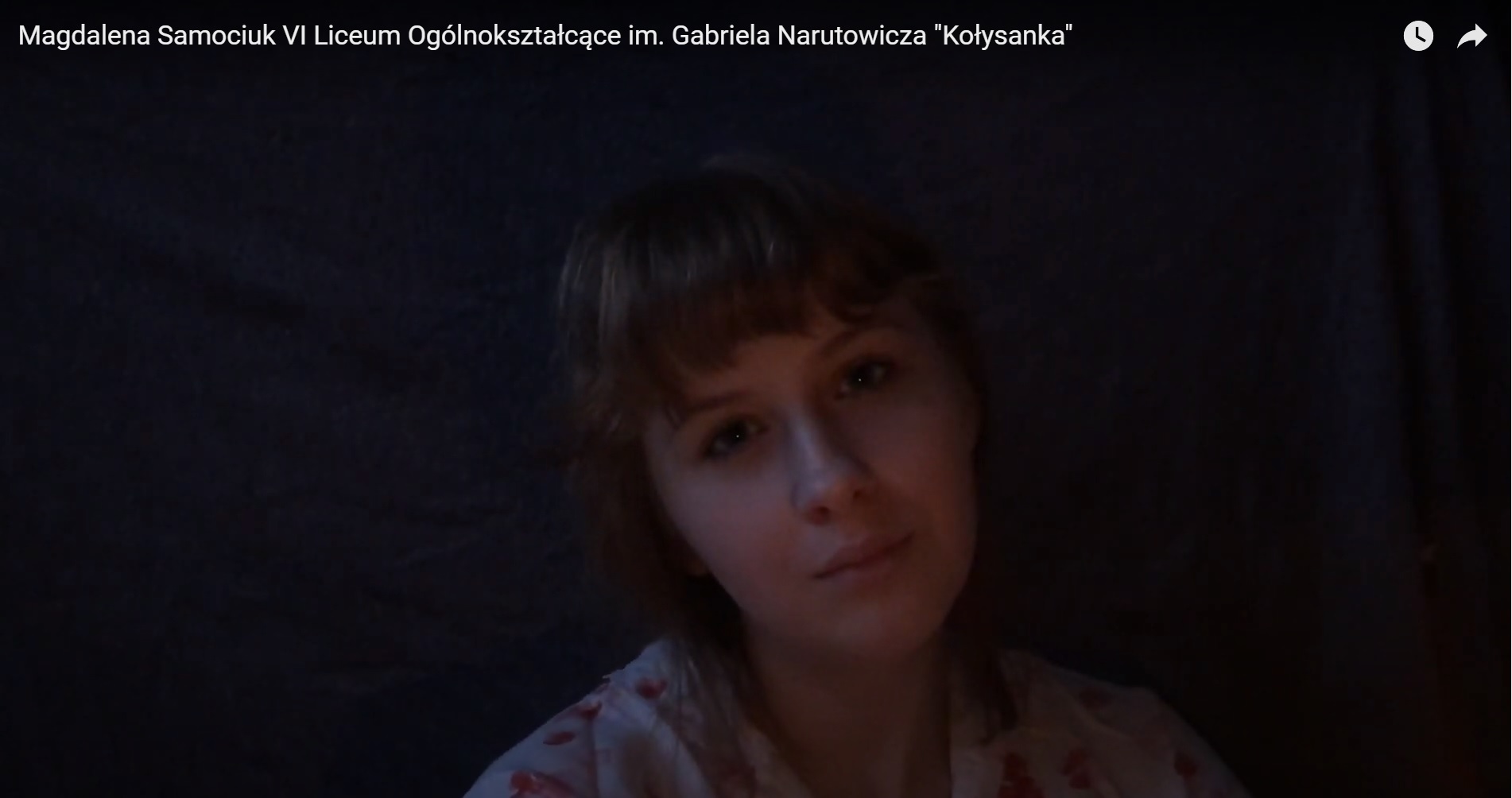 Film na YouTube, w którym można usłyszeć recytację Klaudii, znajduje się pod linkiem: